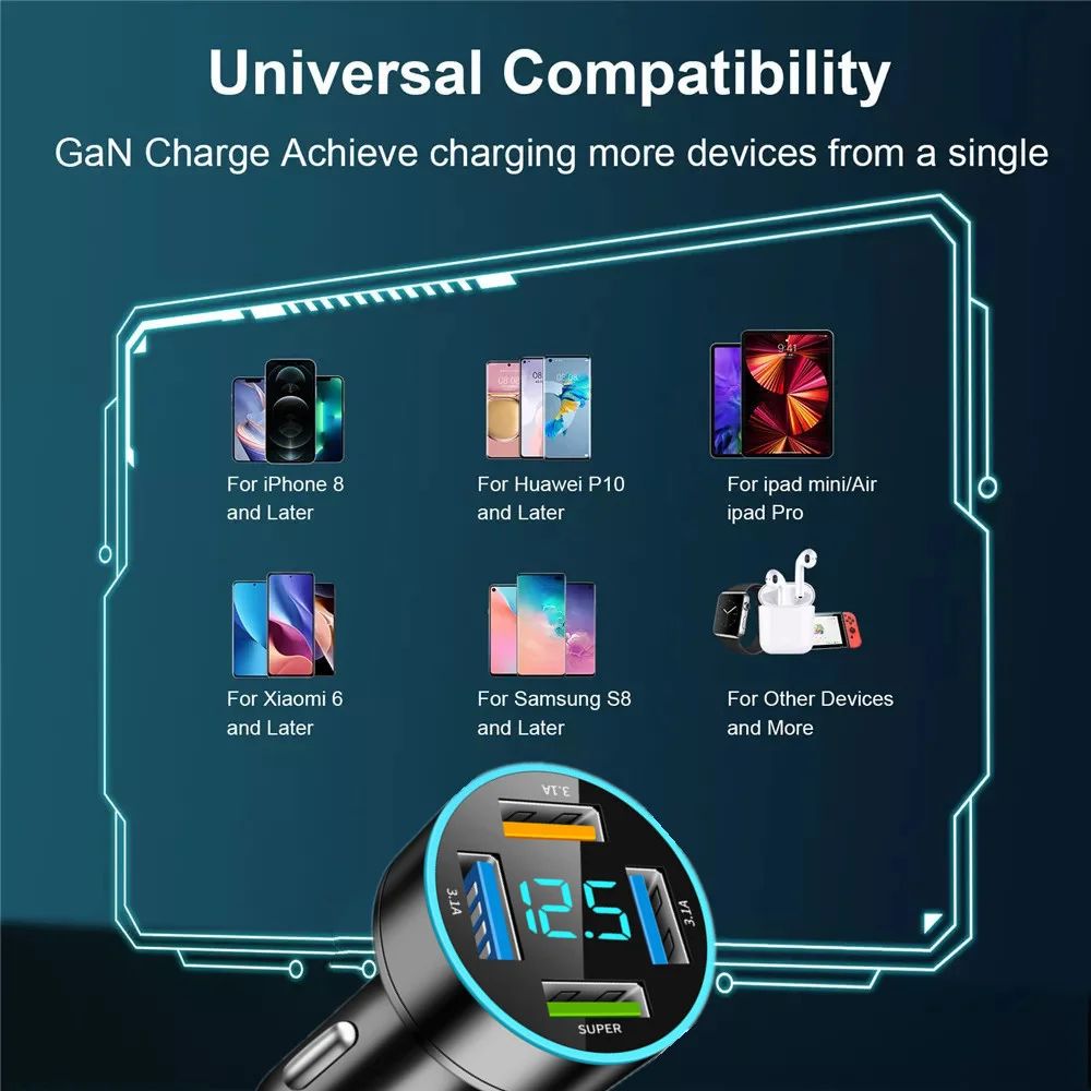 Adaptador de cargador de coche de carga rápida para coche de 66W, 4 puertos, carga rápida USB para iPhone, Samsung, Xiaomi, Huawei, cargador de carga rápida en coche