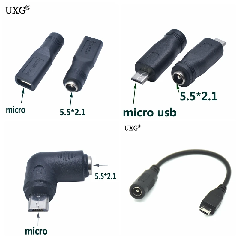 5,5*2,1 a Micro USB Jack Micro 5Pin DC cargador de corriente Adaptador convertidor conector para ordenador portátil/tableta/teléfono móvil