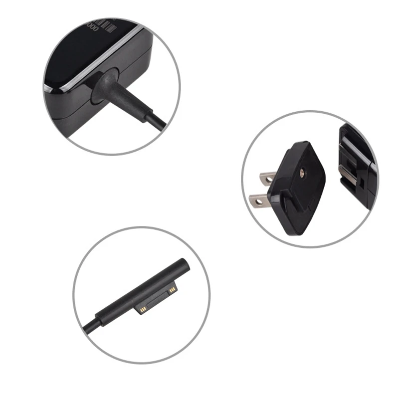 Nuevo y de alta calidad, Chip original, sin defectos, ¡Compre con confianza!Voltaje de salida: 15VCorriente de salida: 2.58AFrecuencia de salida: 50-60HZPotencia de salida: 38WVoltaje de entrada:Punta de CC: Puerto especialLongitud del cable de CC: aproximadamente 1,5 m, puede variar un poco, se enviará al azarColor: negroModelo compatible: Para Microsoft Surface Pro 5 / Pro 6 / New Surface Pro / Surface Laptop serie 15V 2.58AEnchufe: UE, EE. UU., AU, elija uno. (Si necesita Reino Unido, puede dejarnos el mensaje o contactarnos)