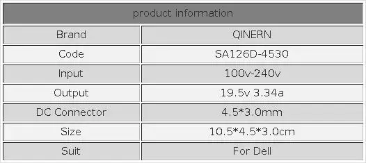 Artículo: adaptador de corriente para portátil de 65W 19,5 V 3.34A