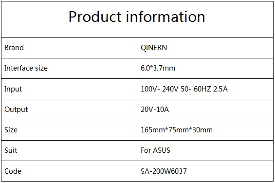 Artículo: adaptador de corriente para portátil de 200W 20V 10A