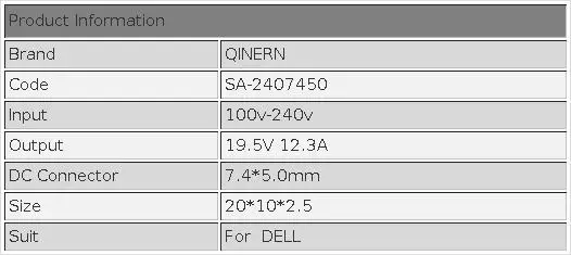 Item: 240W 19.5V 12.3A Notebook Laptop Power Adapter