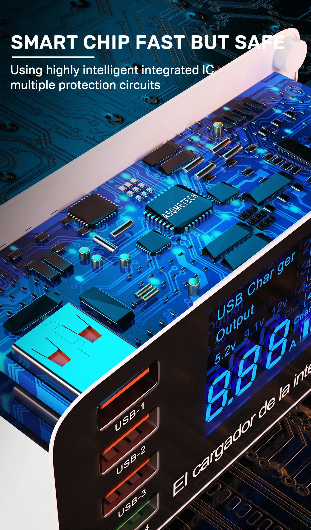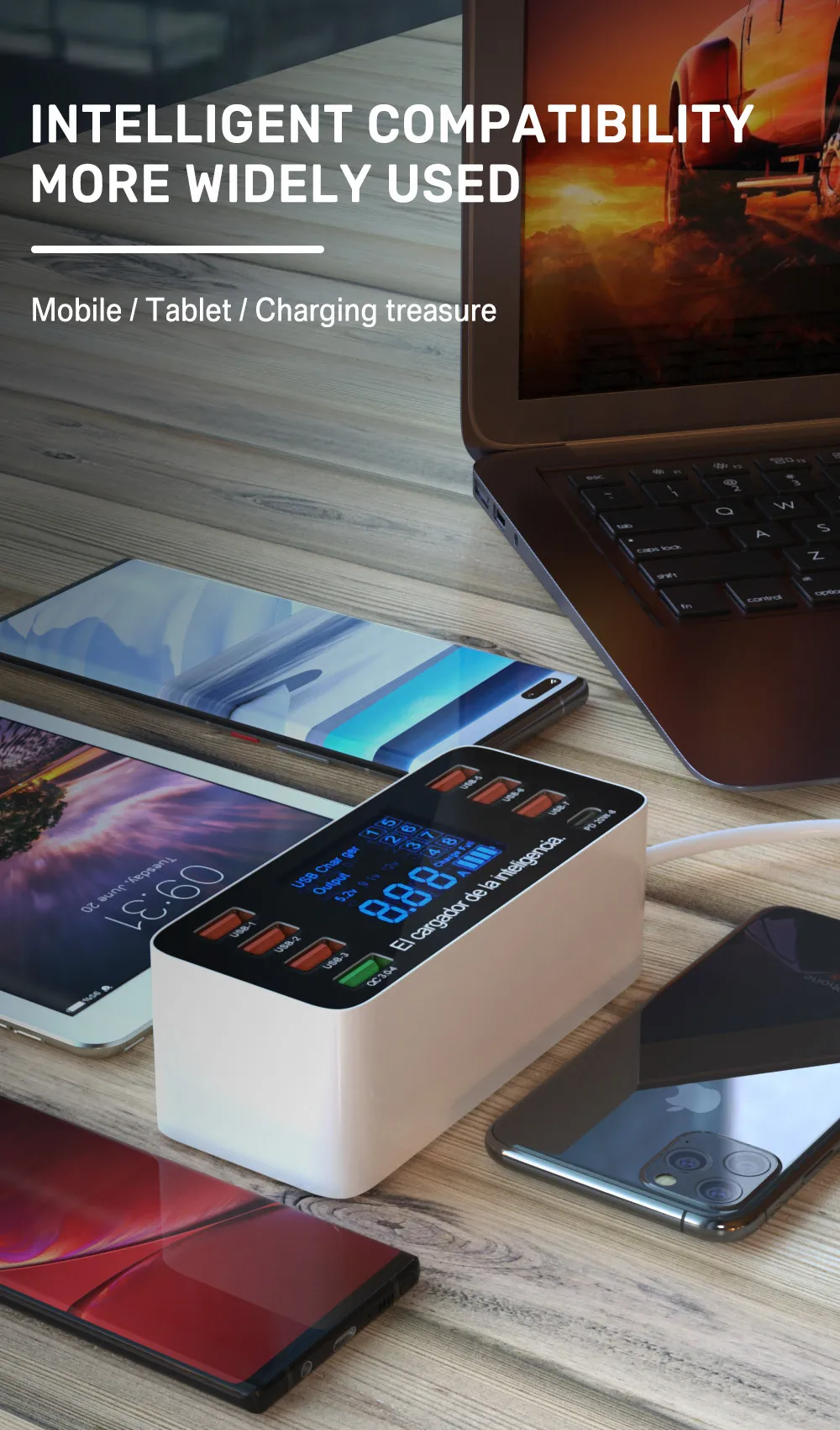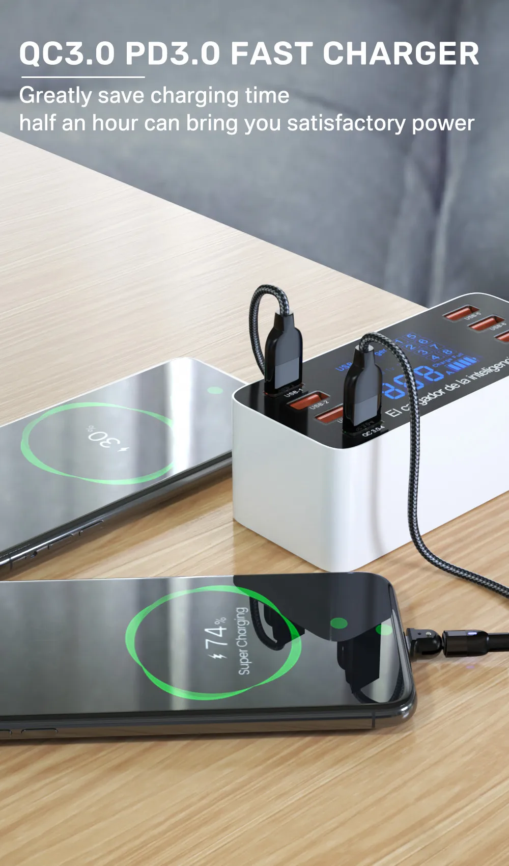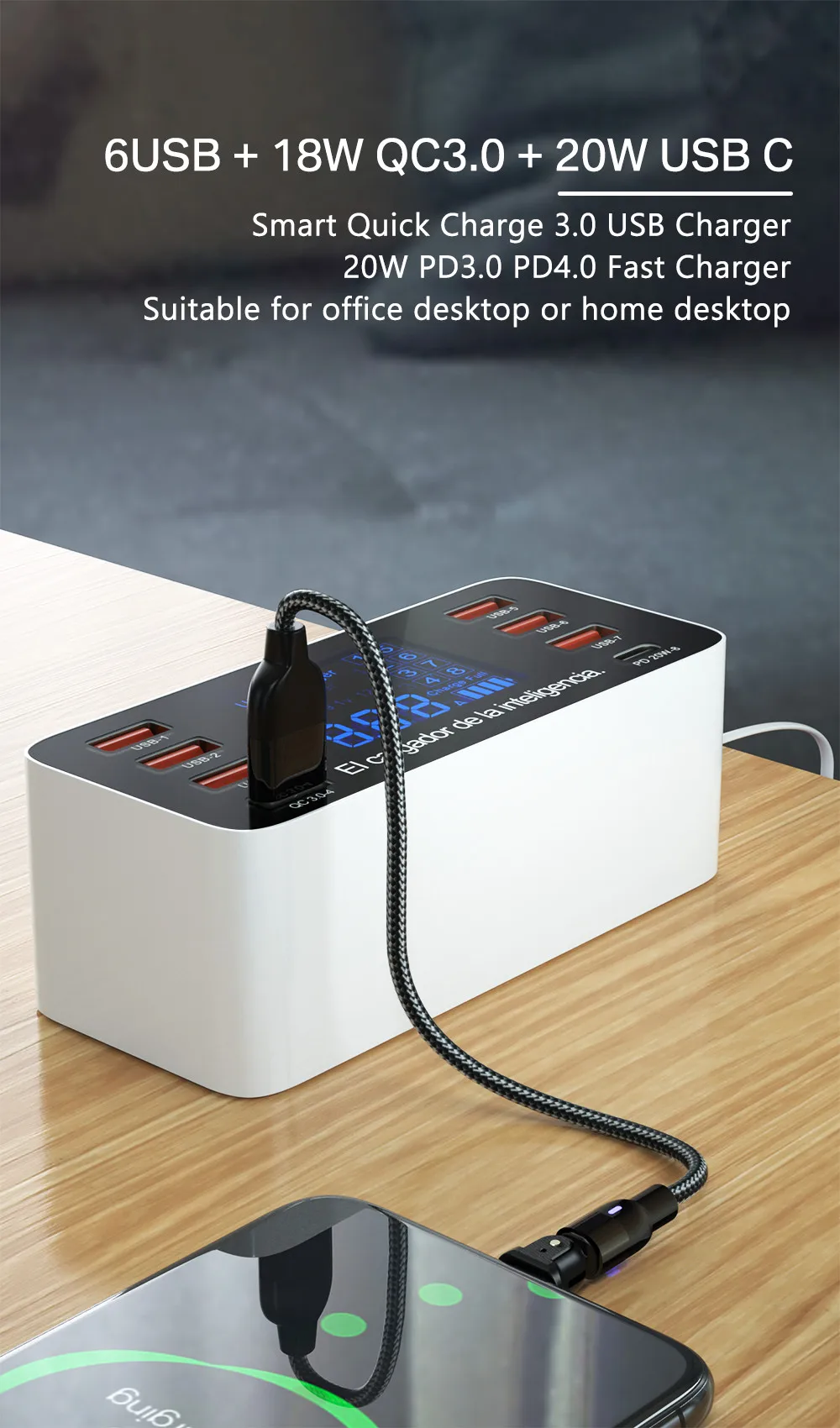 Cargador rápido USB 6USB + 18W QC3.0 + 20W PD3.0