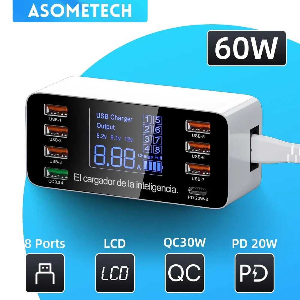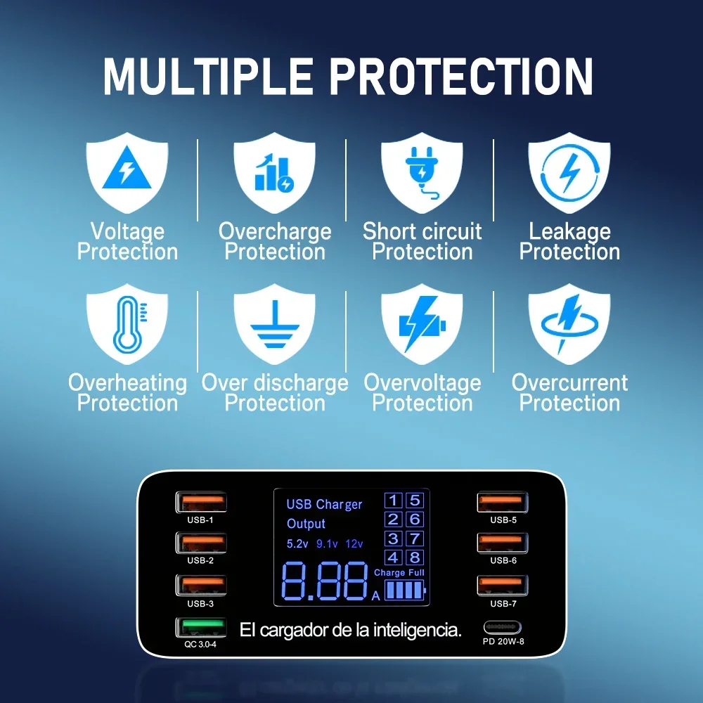 Cargador rápido USB 6USB + 18W QC3.0 + 20W PD3.0