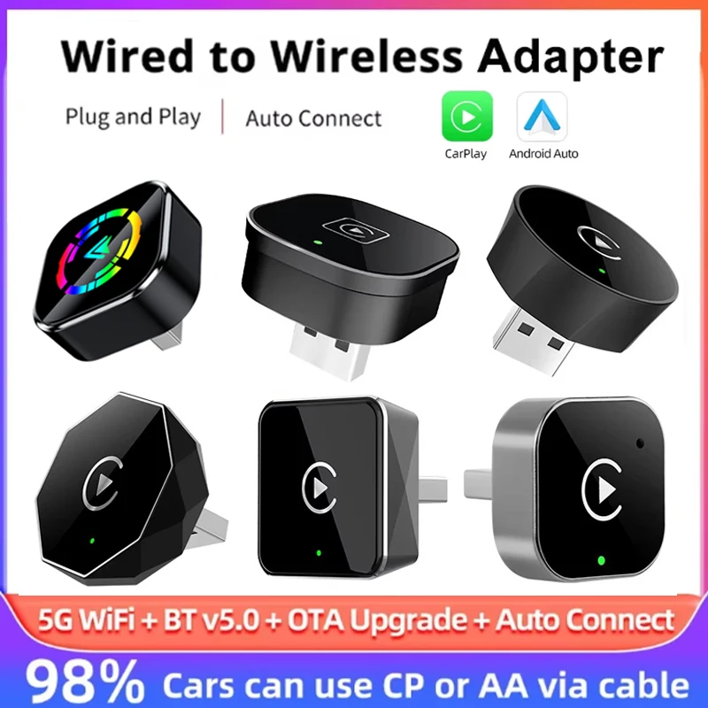 Comprar Adaptador Carplay inalámbrico para Android iPhone Auto 2 en 1 cableado a caja AI inalámbrica conexión USB para Volvo Benz Mg Kia Chery VW