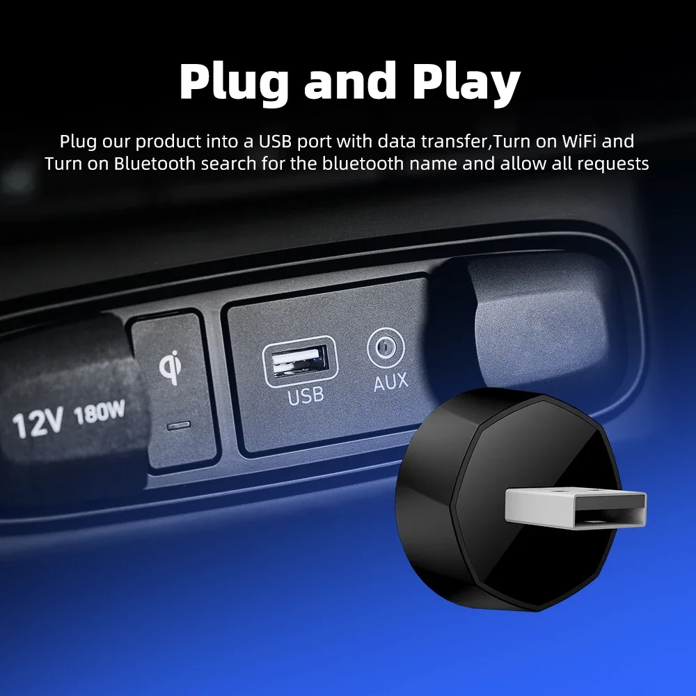 1.Adaptador CarPlay con cable a inalámbrico, diga adiós a los cables. Instalación USB plug-and-play, estable y rápida, sin necesidad de quitar la radio OEM