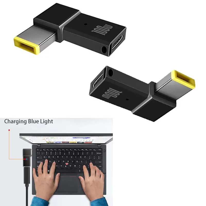 Comprar Adaptador de codo cuadrado macho a hembra, convertidor de Cable de carga tipo C para Lenovo Thinkpad PD Charger, 100W, 20V, 1145
