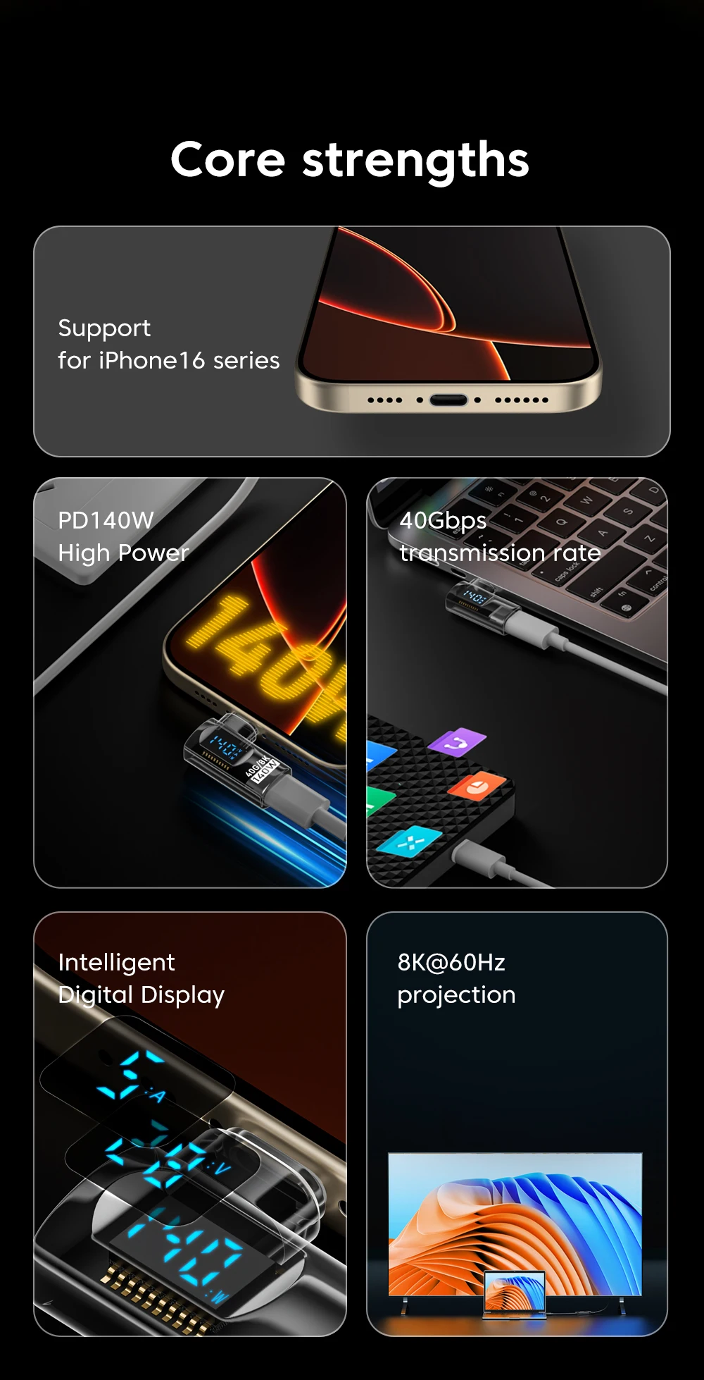 4.Función: datos de 40 Gbps + carga de 140 W