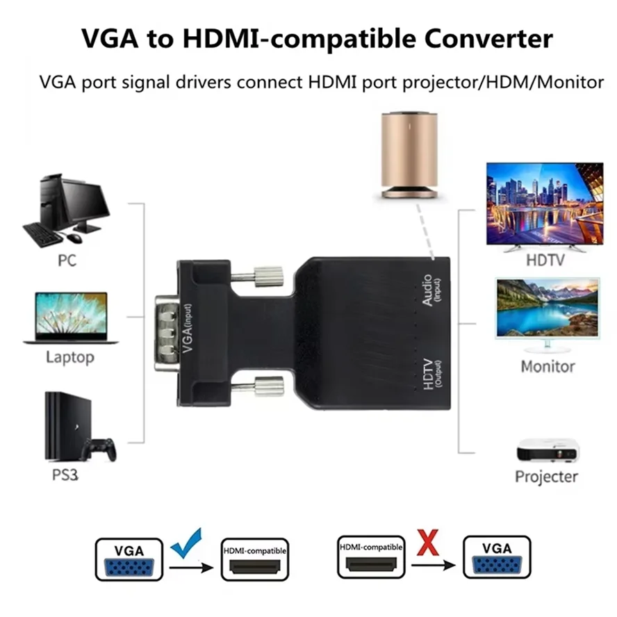 Comprar Adaptador compatible con 1080P HD VGA a HDMI con Cable de alimentación de Audio y vídeo de 3,5mm a convertidor de proyector HDTV para Monitor, PC y portátil