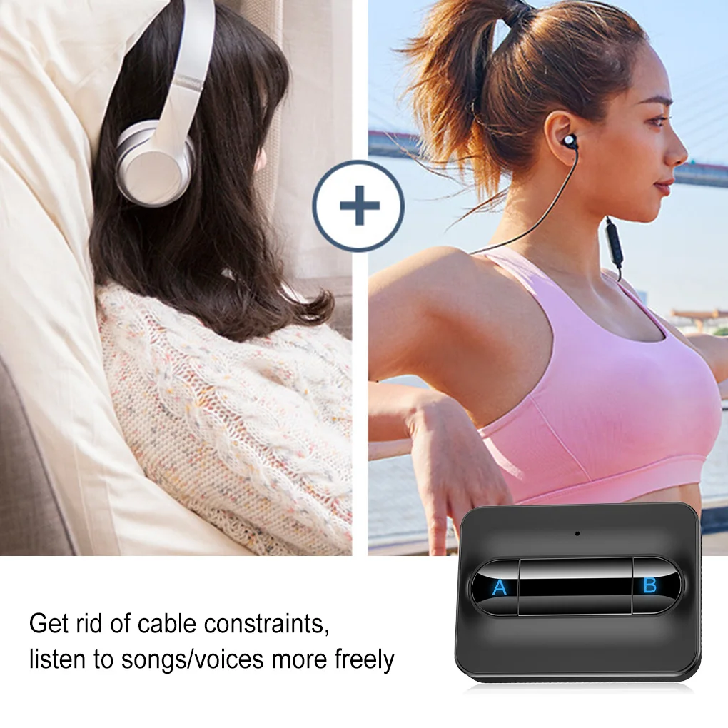 Conector de 3,5mm: el transmisor de audio está diseñado con un conector AUX de 3,5mm, con una calidad de sonido sin pérdidas, lo que proporciona una experiencia agradable.