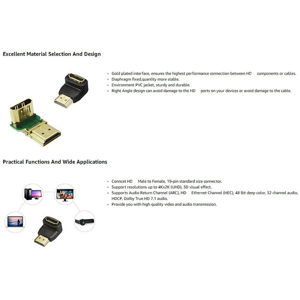 Los adaptadores compatibles con HDMI en ángulo evitan doblar los cables compatibles con HDMI y alivian la tensión en los puertos compatibles con HDMI para aumentar la vida útil de su dispositivo y cable compatible con HDMI.