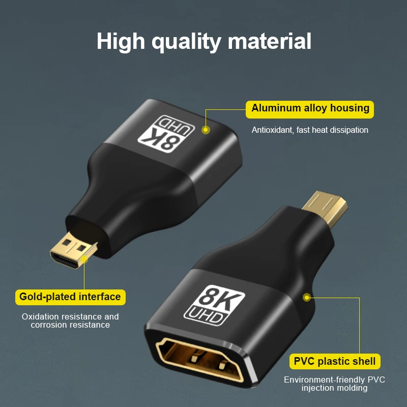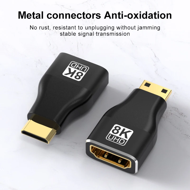 El adaptador Miziqier HDMI 2.1 de ultra alta velocidad es compatible con HDMI 8K y garantiza la compatibilidad con modos de vídeo de alta resolución como 4K50/60/100/120Hz y 8K50/60Hz.Estos adaptadores son más fáciles de transportar y almacenar que los cables.Solo necesita emparejar un cable HDMI-A estándar para lograr la conversión entre dispositivos Micro HDMI y Mini HDMI.
