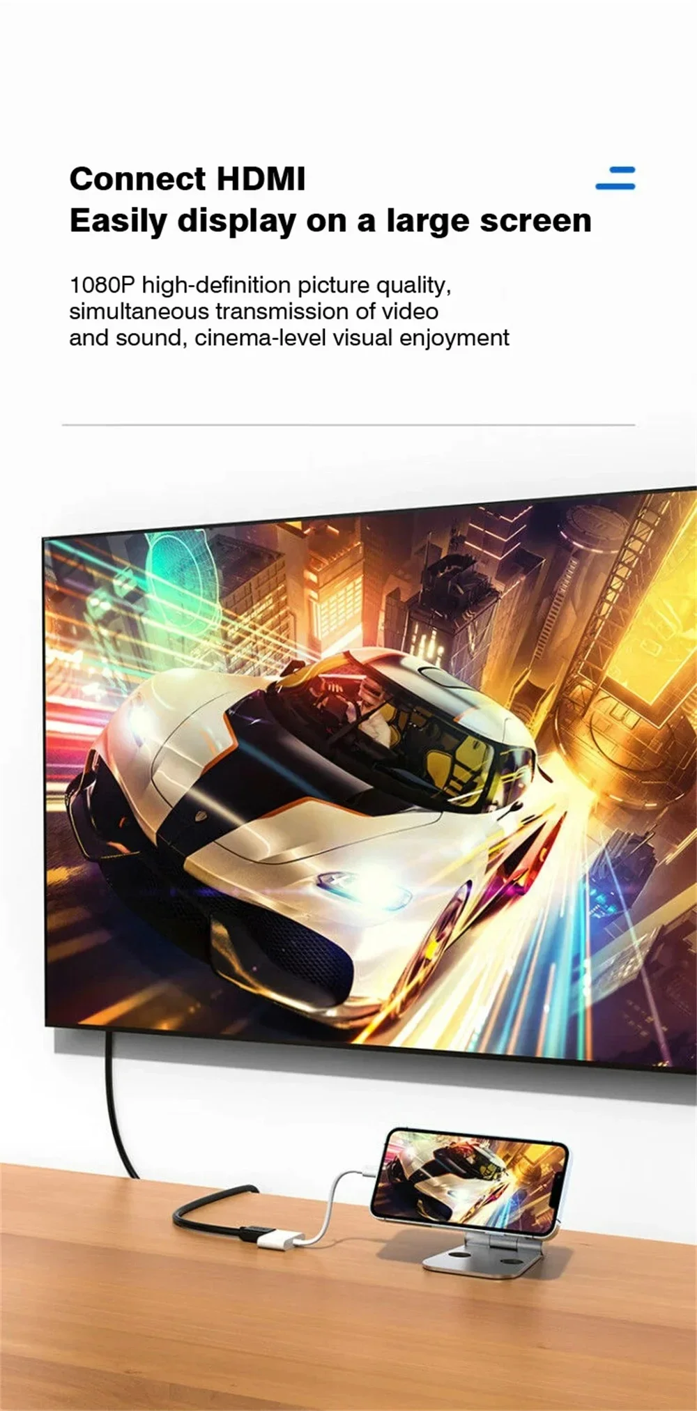 [Perfecto para compartir] Con este adaptador de TV compatible con HDMI, puede sentarse y acostarse para jugar y ver películas y disfrutar de su propia vida, también compartir películas, videos, fotos con su familia y amigos en pantalla grande.No sólo disfrutar solo del teléfono.Puedes jugar con tus hijos en la televisión.¡Que tengas un momento maravilloso entre padres e hijos!