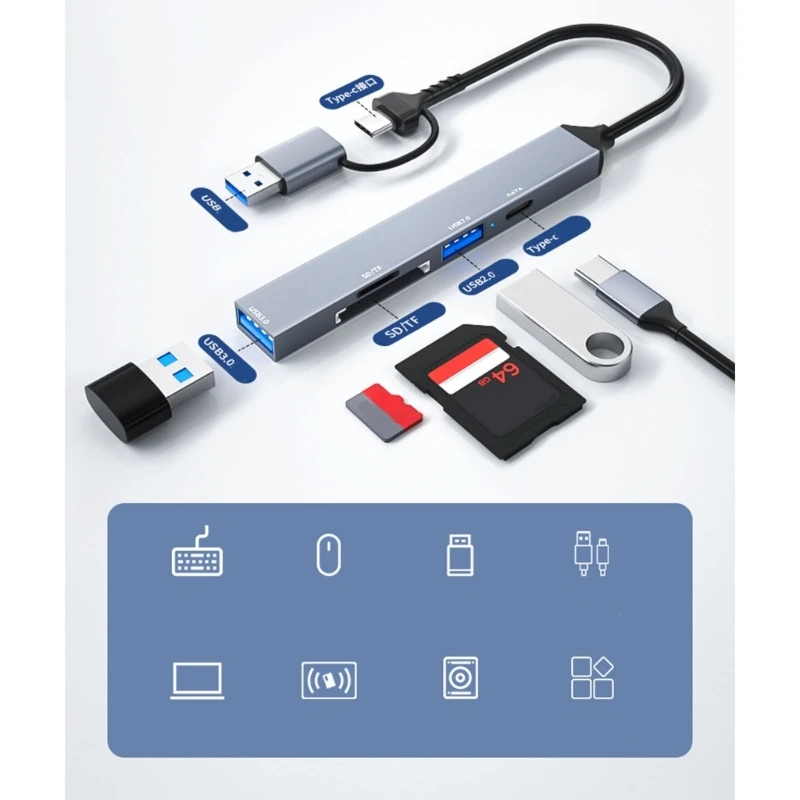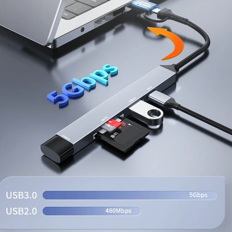 Características:Con transferencia de datos tipo C, USB2.0, USB3.0, lectura de tarjetas, este concentrador ofrece una amplia gama de opciones de conectividad.