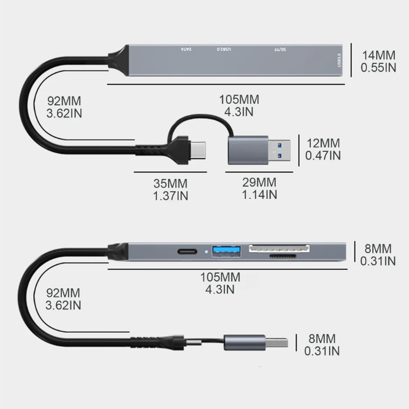 Características:OotdtyAmplía las capacidades de tu dispositivo con este expansor de concentrador 5 en 1 USB + tipo C.