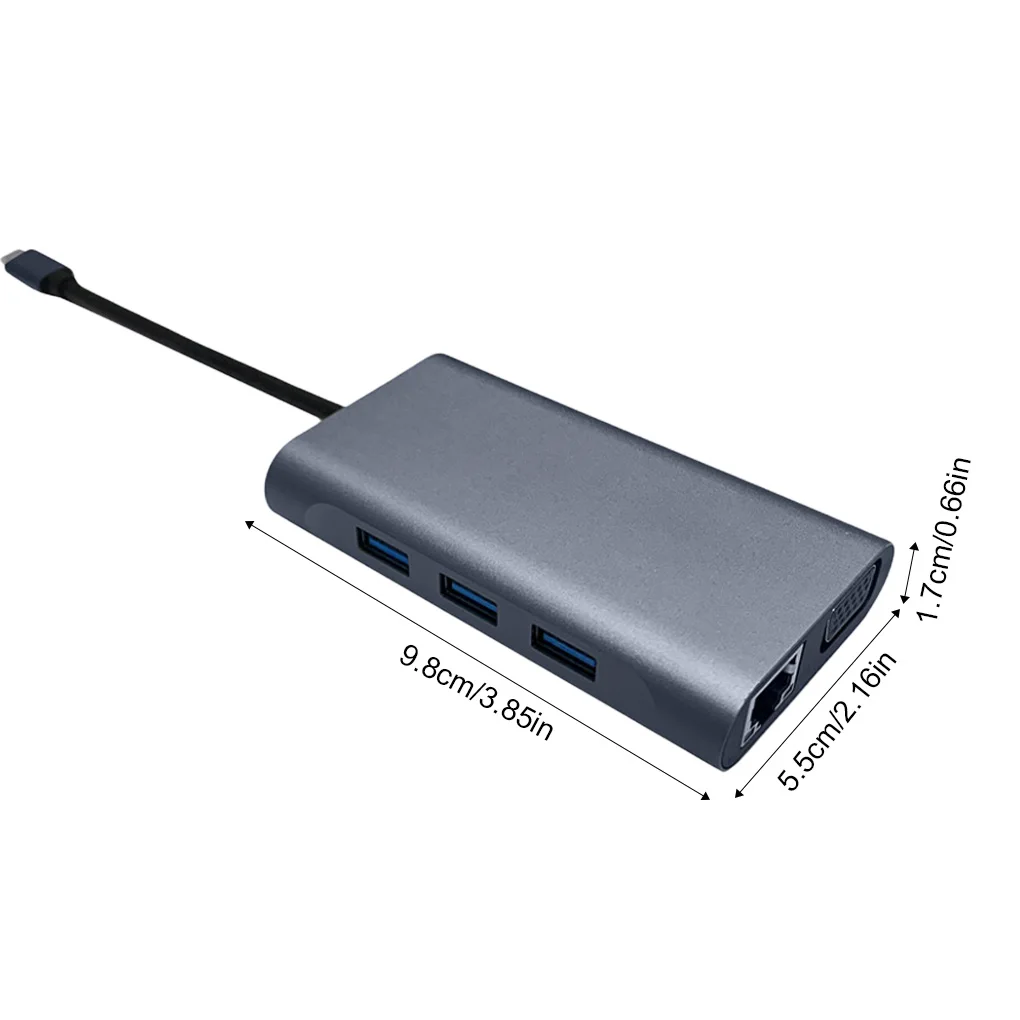 Múltiples puertos: Este concentrador tipo C cuenta con muchos tipos de puertos, como USB 3,0, USB 2,0, PD, compatible con HDMI, VGA, RJ45.