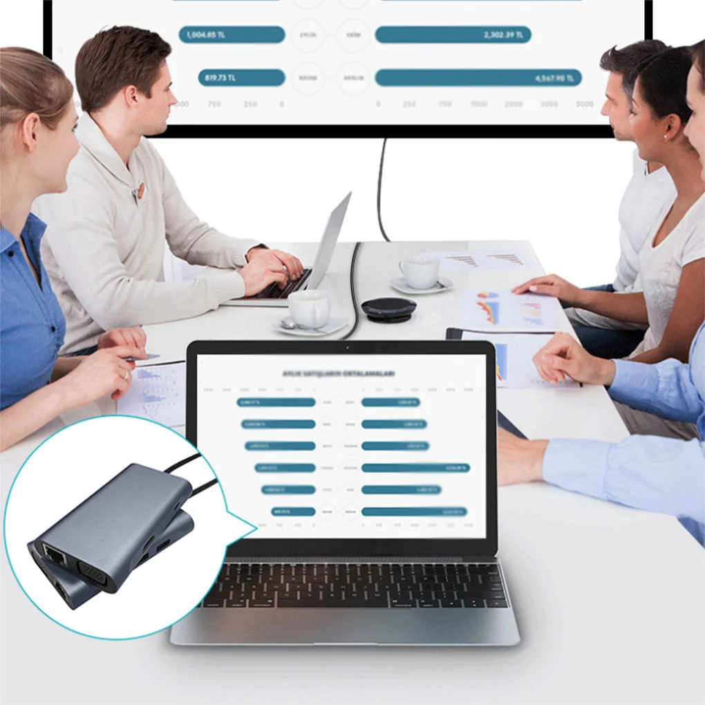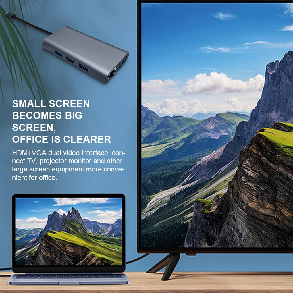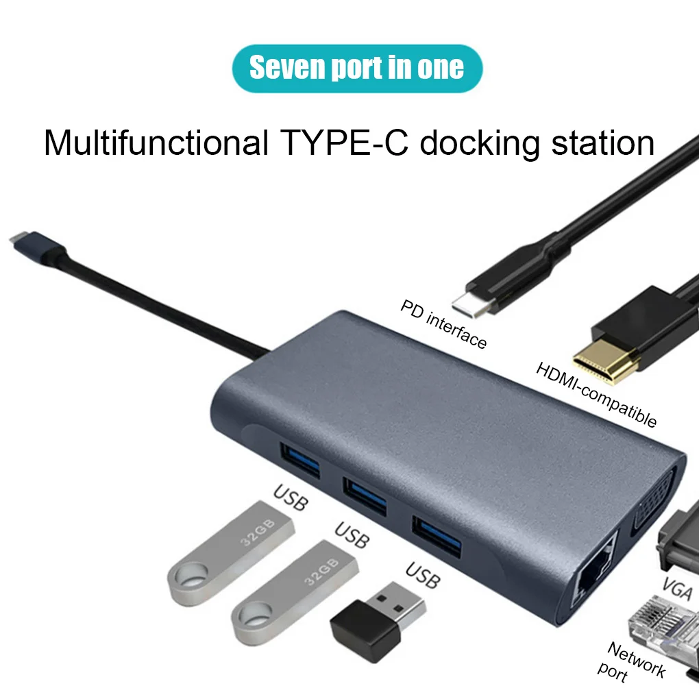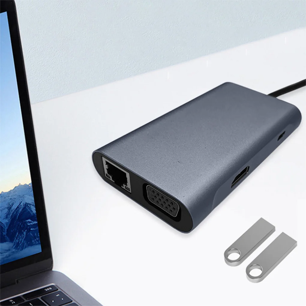 Múltiples puertos: Este concentrador tipo C cuenta con muchos tipos de puertos, como USB 3,0, USB 2,0, PD, compatible con HDMI, VGA, RJ45.