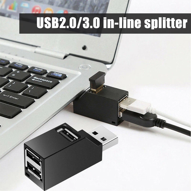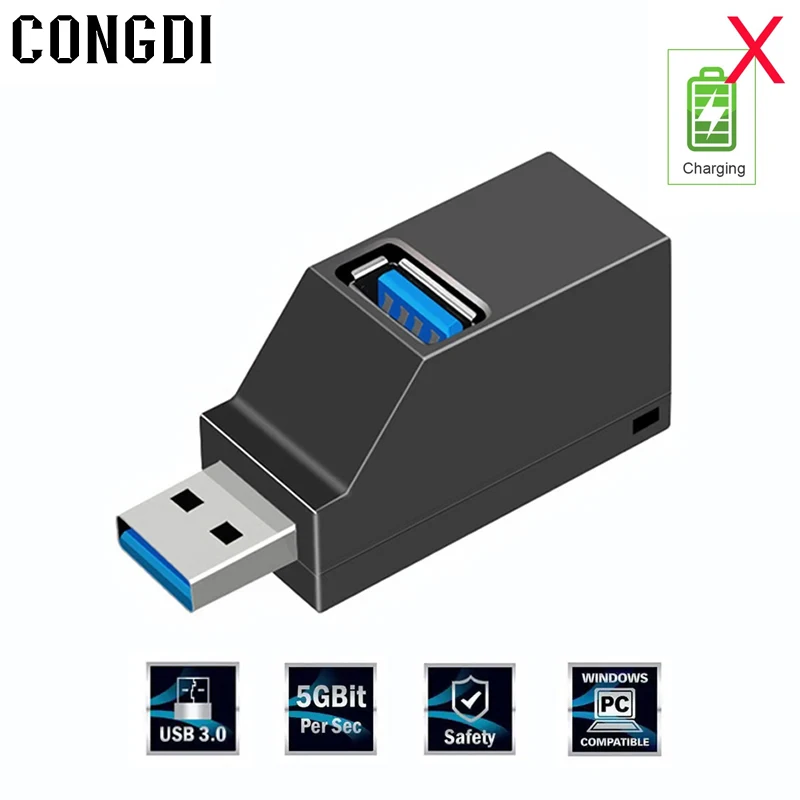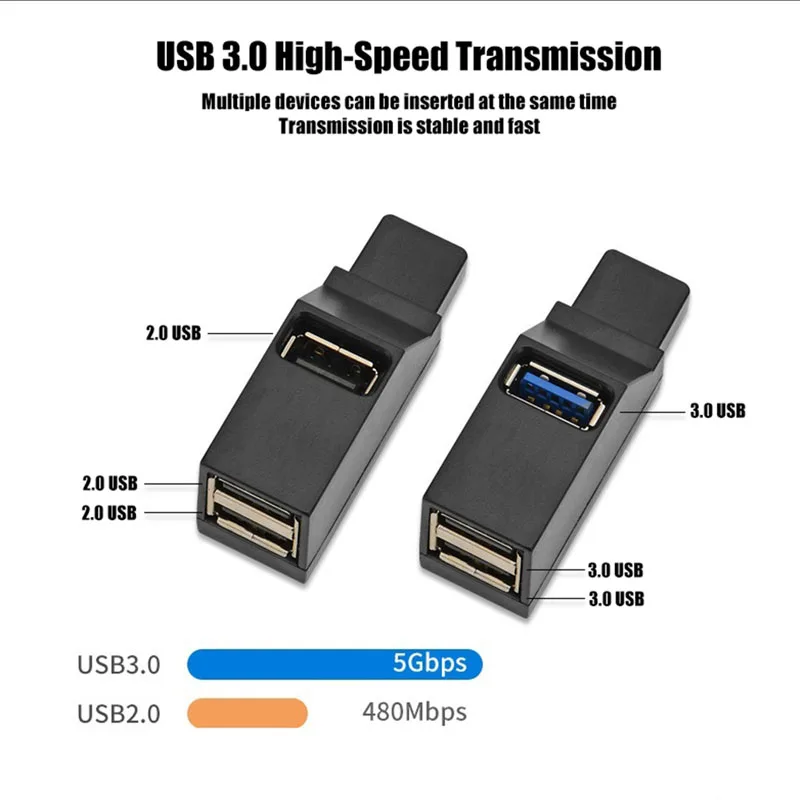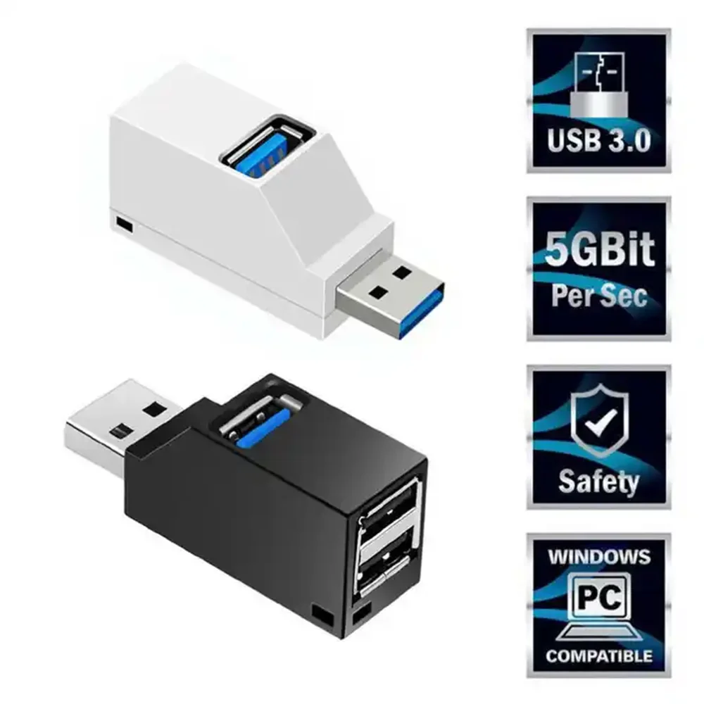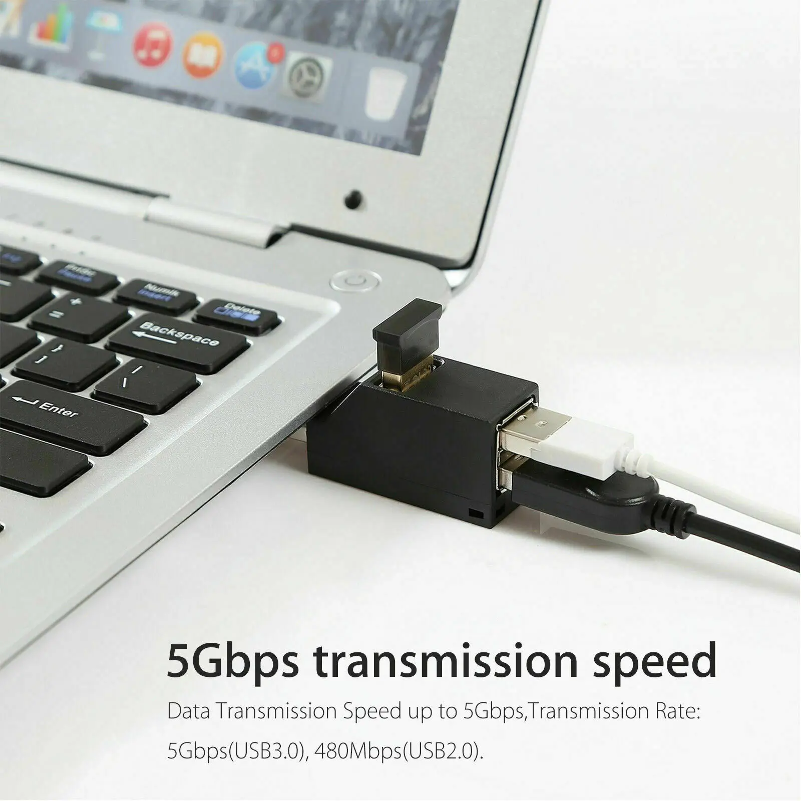 Comprar Adaptador de concentrador USB 3,0/2,0, Hub de expansión de 3 puertos USB, Mini divisor de transferencia de datos de alta velocidad para PC, portátil, ratón, impresora Keyborad