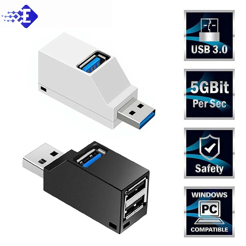 Mini 3 puertos USB 3,0 Splitter Hub Transferencia de datos de alta velocidad