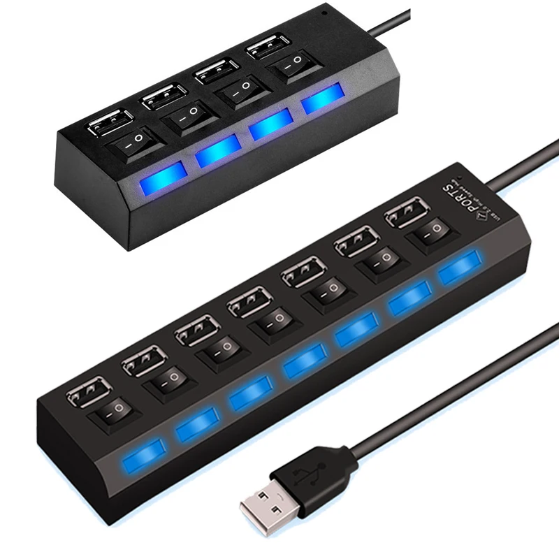 Comprar Adaptador de concentrador USB 4/7 de alta velocidad, 2,0 puertos, extensor múltiple con interruptor de lámpara LED para PC y portátil