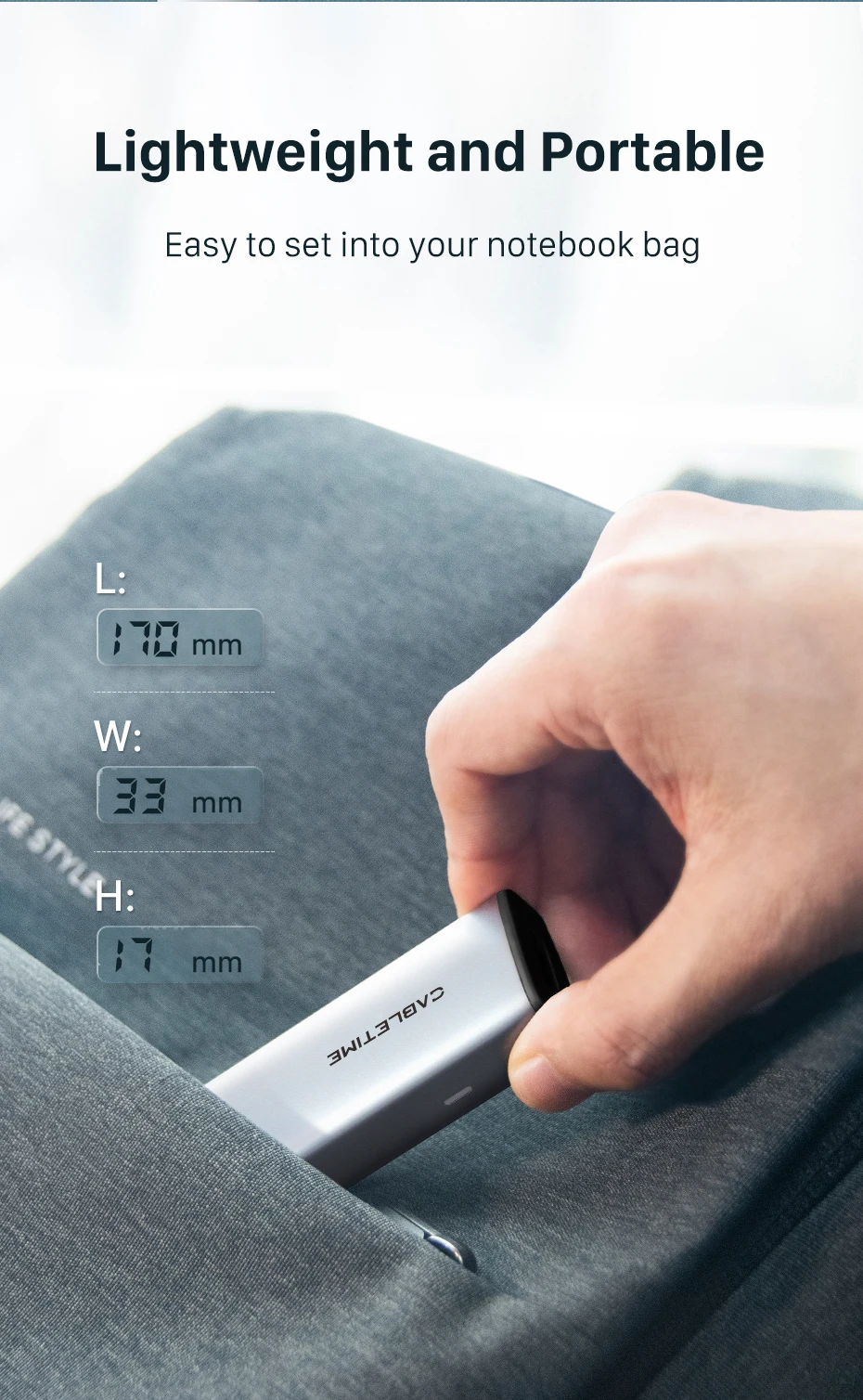 Su sofisticado diseño de aluminio anodizado complementa perfectamente la estación de trabajo y es muy elegante.El concentrador USB C compacto y portátil permite viajar sin preocupaciones.