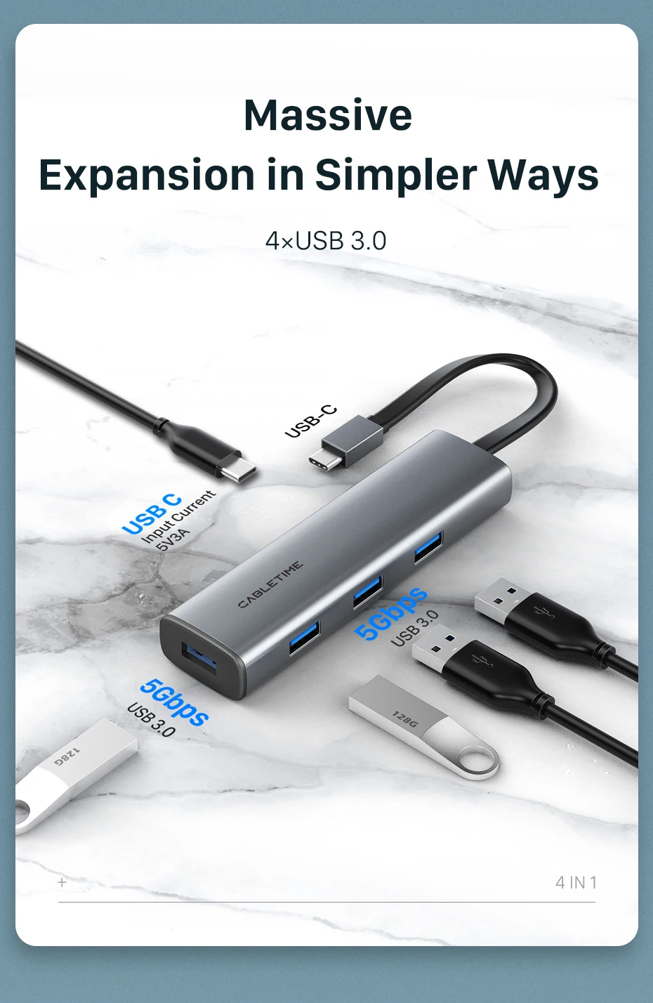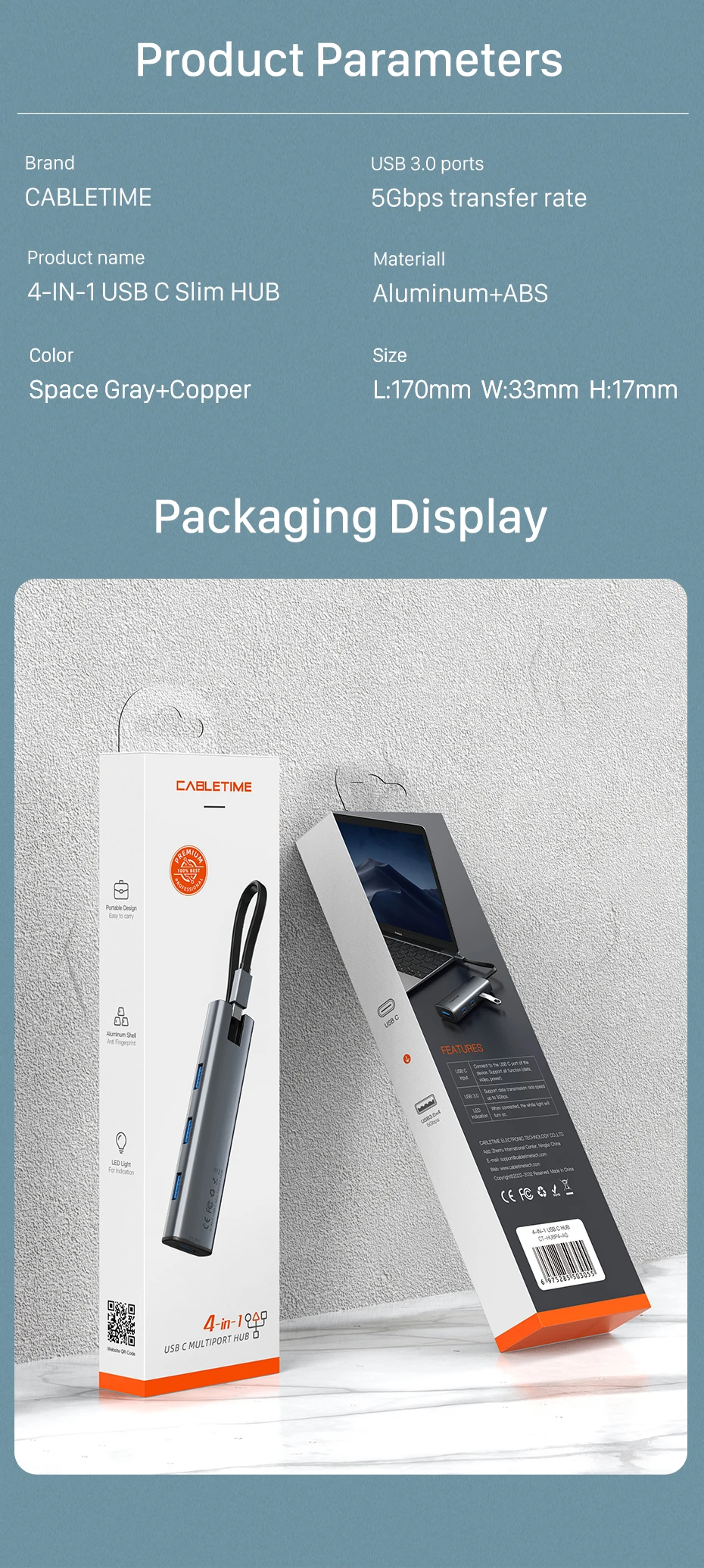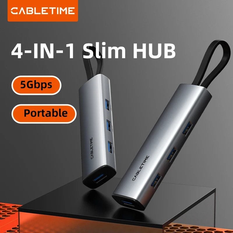 Comprar Adaptador de concentrador USB CABLETIME 4 en 1 adaptador divisor de concentrador delgado tipo C a USB 3,0 5Gbps para PC MacBook Pro/Air ipad iPhone15 USB Dock