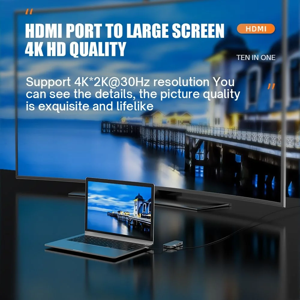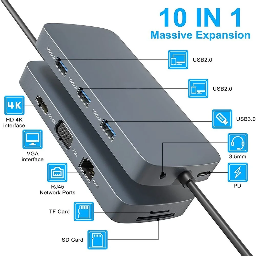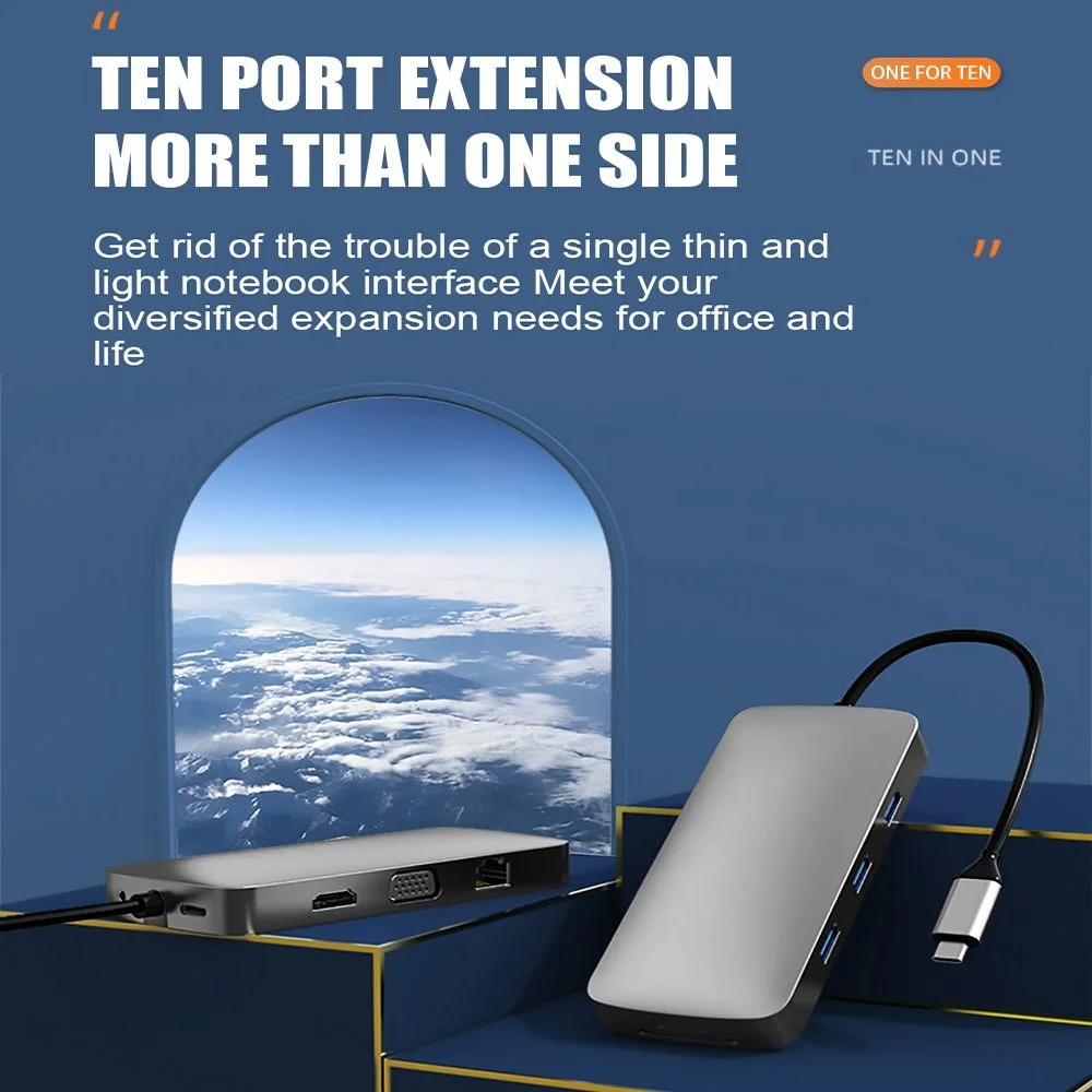 Comprar Adaptador de concentrador USB tipo C 10 en 1, Dongle con HDMI VGA compatible con Dell XPS13, Samsung Galaxy S8 Plus, MacBook Chromebook Pixel