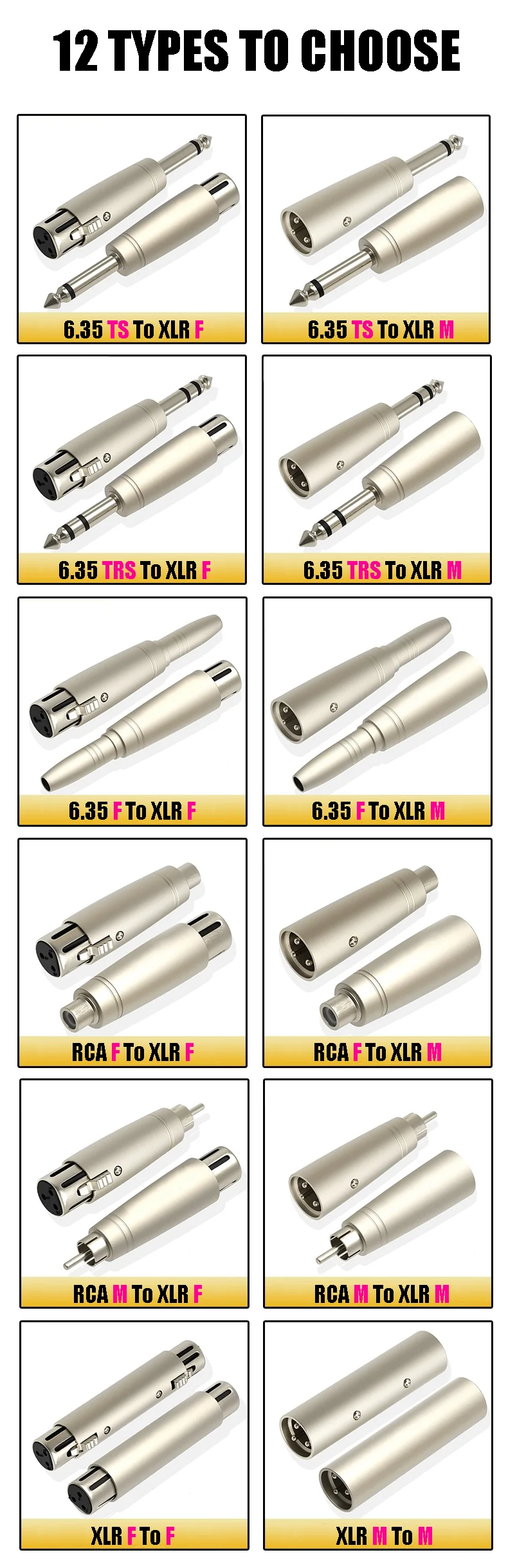 Comprar Adaptador de conector de Audio de 6,35mm TS/TRS 1/4, macho (hembra), RCA macho (hembra) a XLR macho (hembra)