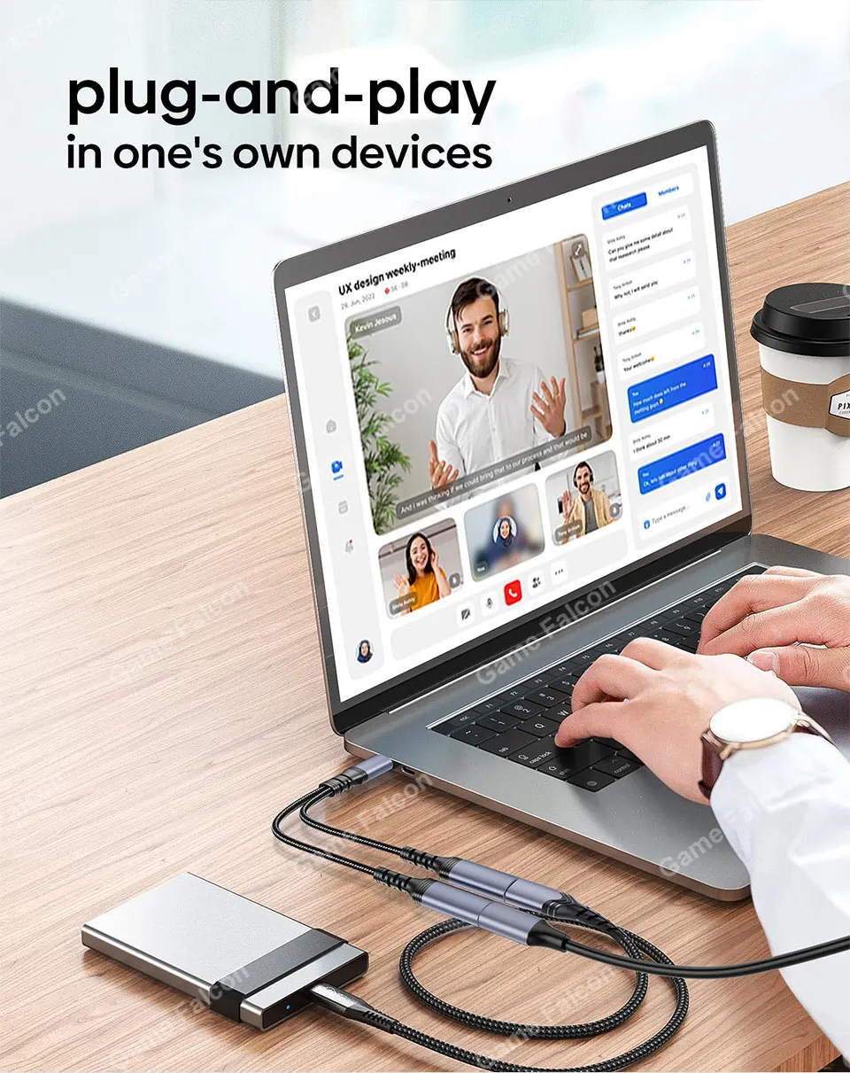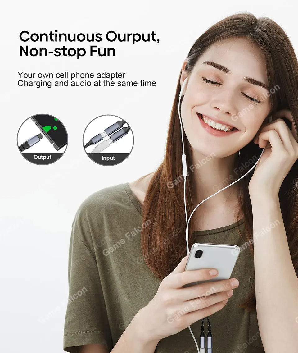 Adaptador de conector para auriculares 2 en 1 tipo C a USB C dual, no te preocupes, el teléfono solo tiene un conector, no puedes jugar al mismo tiempo