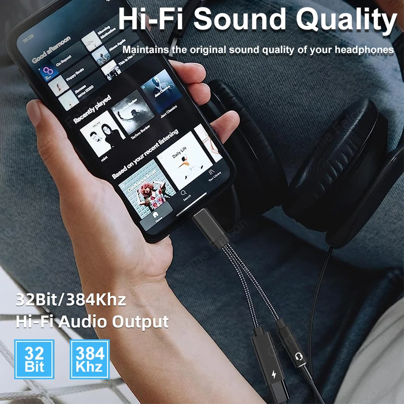 Comprar Adaptador de conector de auriculares 2 en 1 tipo USB C a USB C Dual, adaptador auxiliar de Audio de carga tipo C para iPhone 15, Samsung, Huawei y Xiaomi