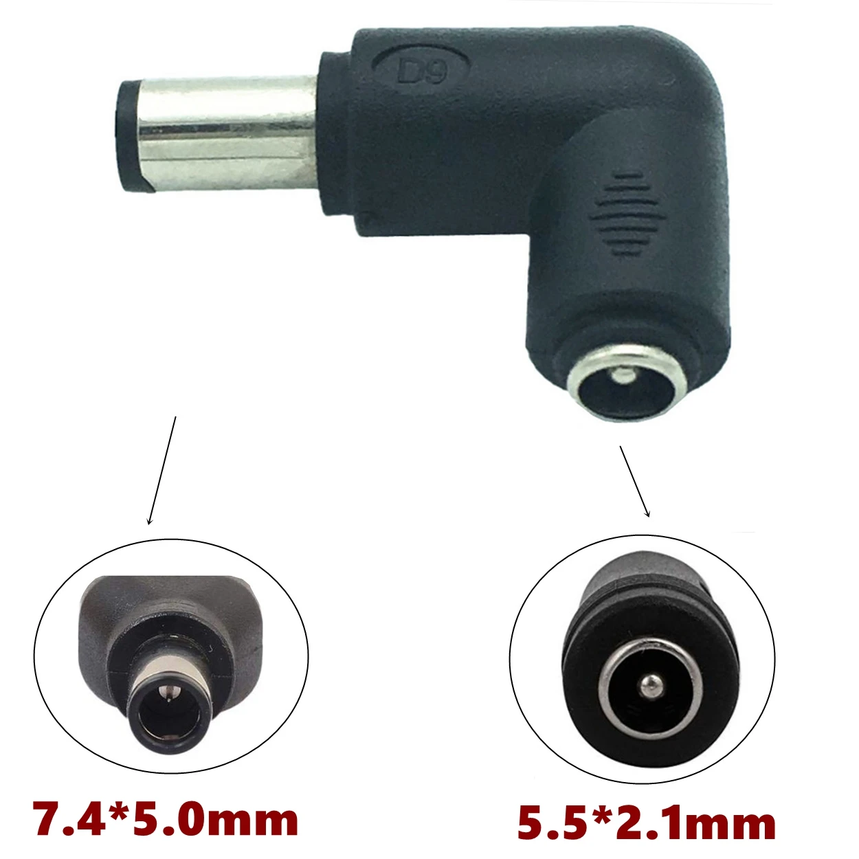 Conector macho de 7,4x5,0mm, conector hembra de ángulo recto de 5,5x2,1mm, adaptador de conector de alimentación de CC de ángulo recto para ordenador portátil