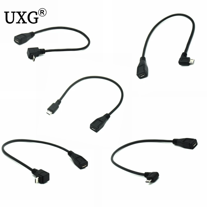 Comprar Adaptador de conector de extensión Micro USB 2,0 de 5 pines macho a hembra M a F conector de clavija larga ángulo recto y izquierdo de 90 grados