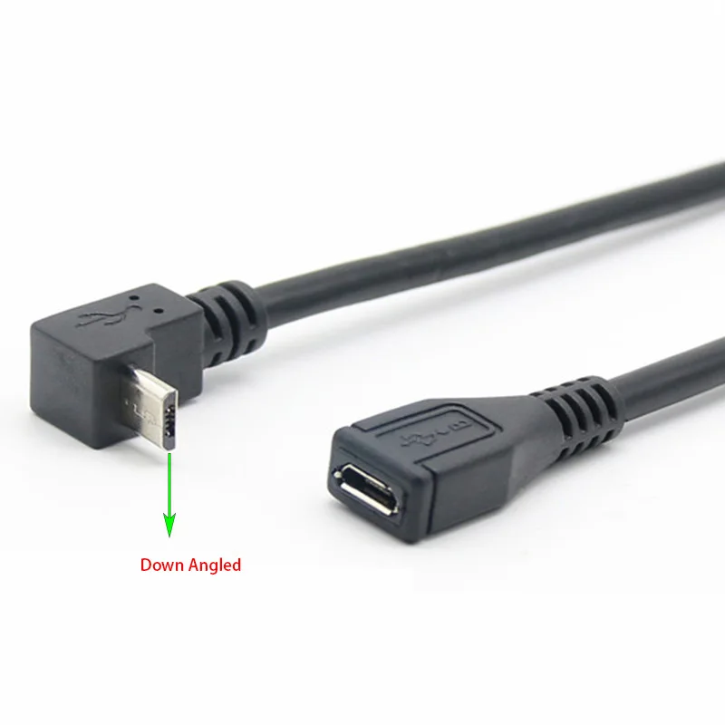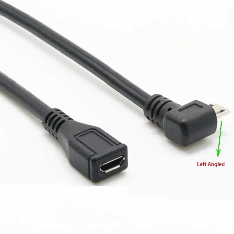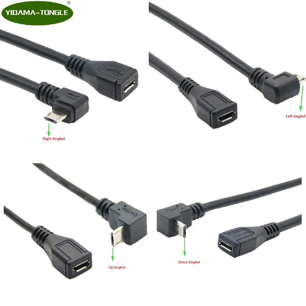 Comprar Adaptador de conector de extensión Micro USB 2,0 de 5 pines macho a hembra M a F, Conector de enchufe largo de 90 grados, derecha, izquierda, arriba y abajo, en ángulo