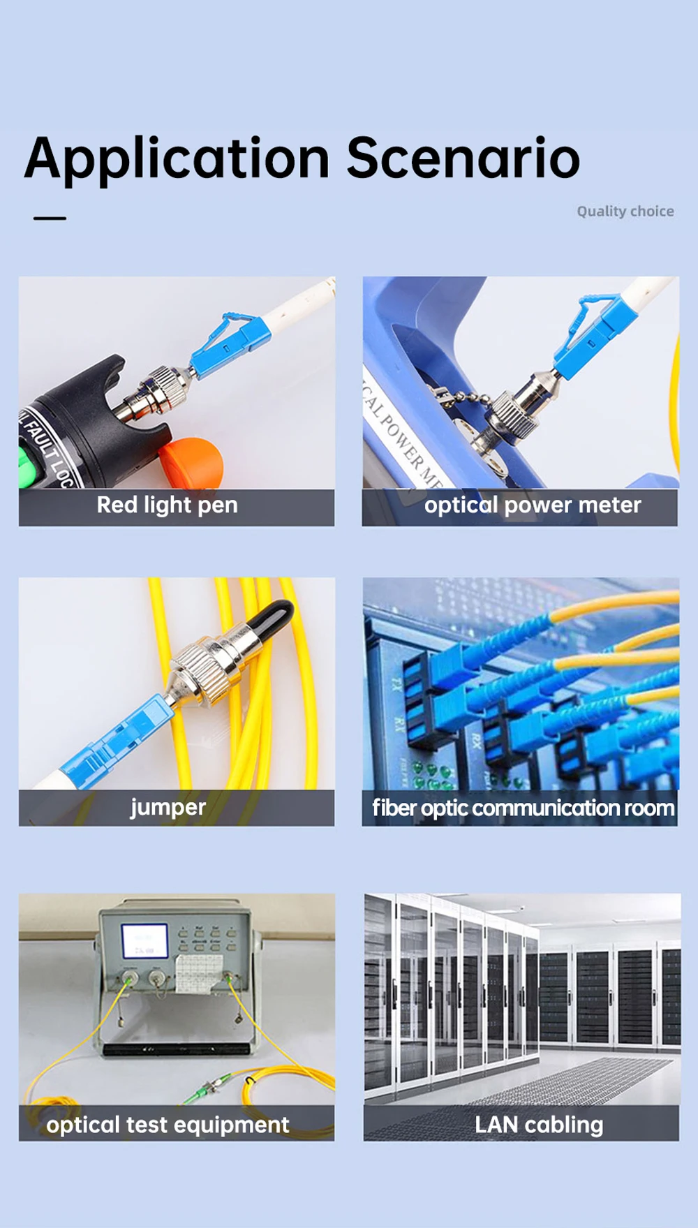 Indica que la pérdida de inserción del adaptador entre diferentes conectores es muy baja, asegurando la estabilidad de la transmisión de la señal.