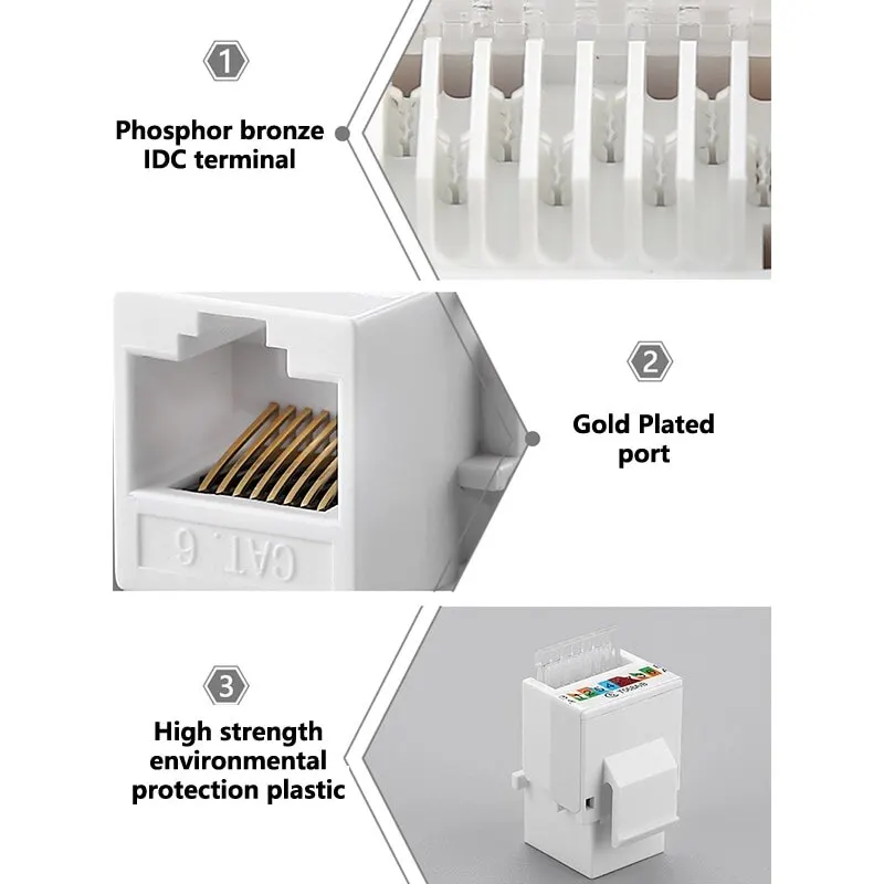 Adaptador de conector hembra RJ45 Cat5e Cat6 UTP Keystone para placa de pared Wisted Pair Cable Lan Ethernet de red de Internet de 2, 0, 2 uds.