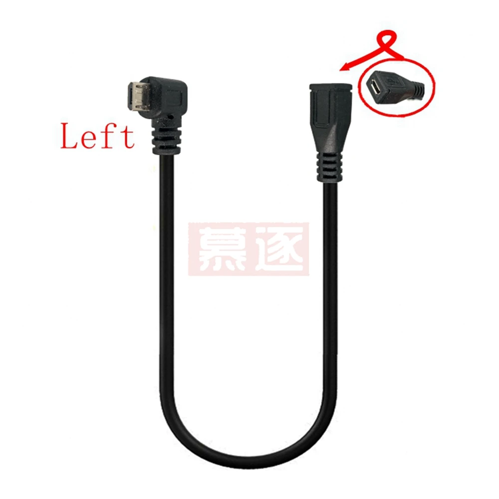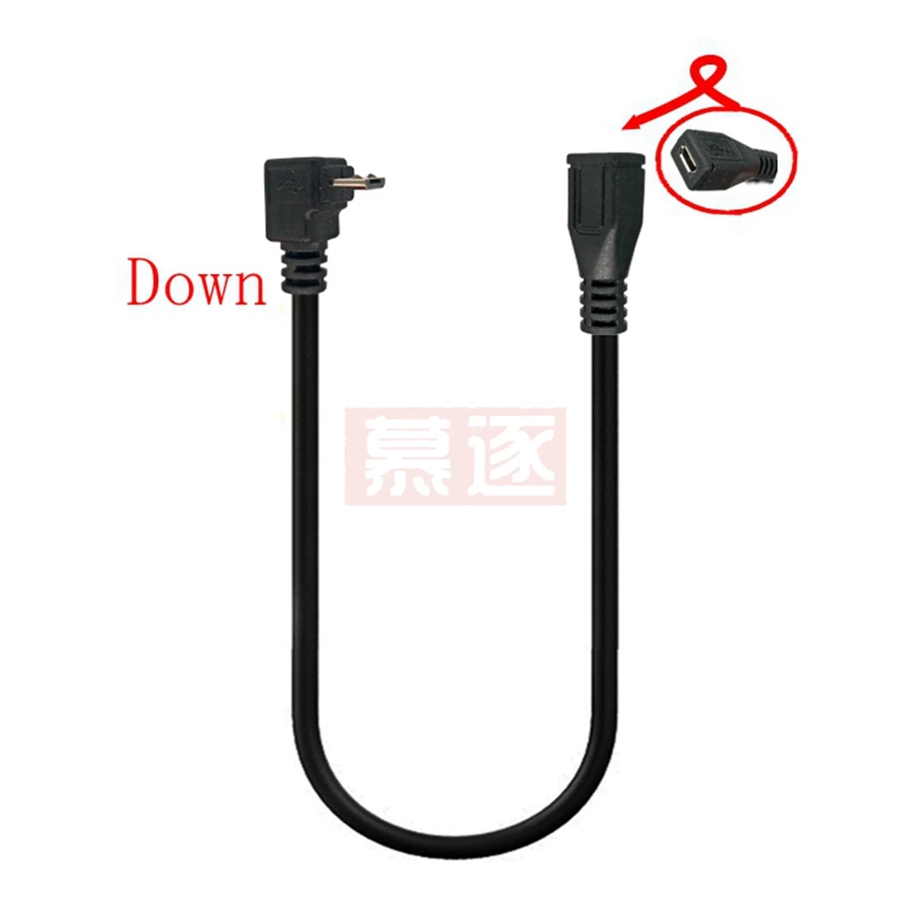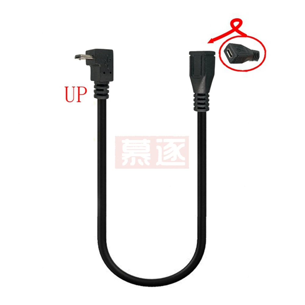 Adaptador de conector Micro USB 2.0 de 5 pines macho a hembra a extensión Conector de enchufe largo 90 grados derecha, izquierda, arriba y abajo en ángulo de 25 cm