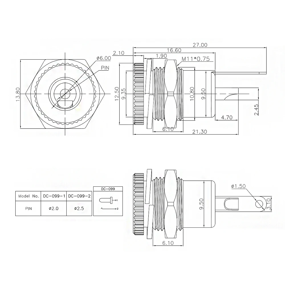 Nombre: 5,5x2,1mm DC Power macho hembra enchufe conector DC099