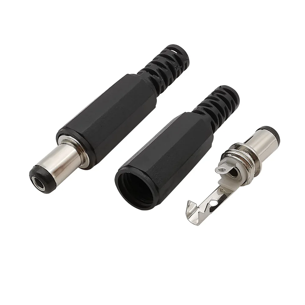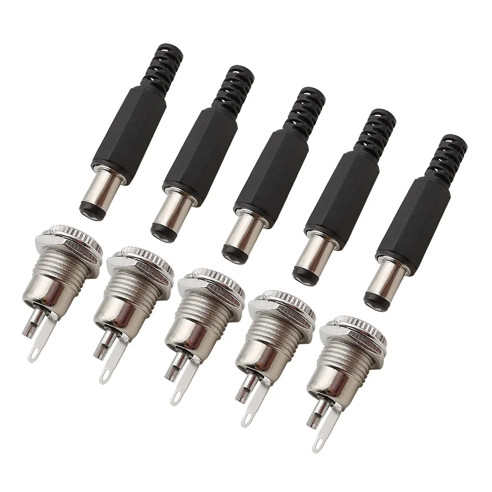 5 pares 5,5x2,1mm DC Power macho hembra enchufe tuerca montaje en Panel conector adaptador Metal DC099 DC-099
