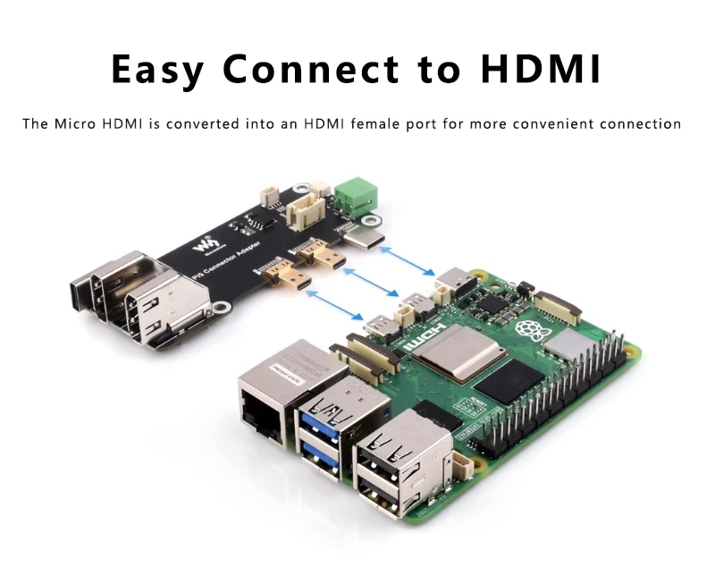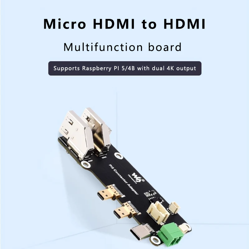 Adaptador de conector Raspberry PI 5, adaptador Micro HDMI a HDMI, placa de expansión de salida Dual 4K, Compatible con PI 4B