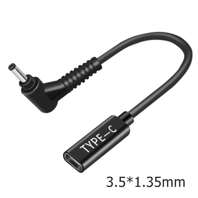Adaptador de conector CC de ángulo recto USB tipo C hembra a 90 grados Cable convertidor de cargador de fuente de alimentación de carga PD para computadora portátil