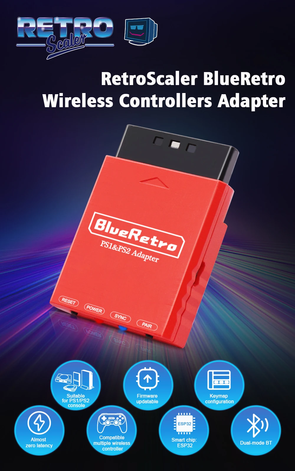 Adaptador de controladores Bluetooth RetroScaler BlueRetro para PS1/PS2