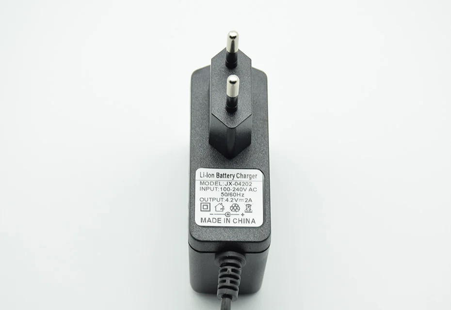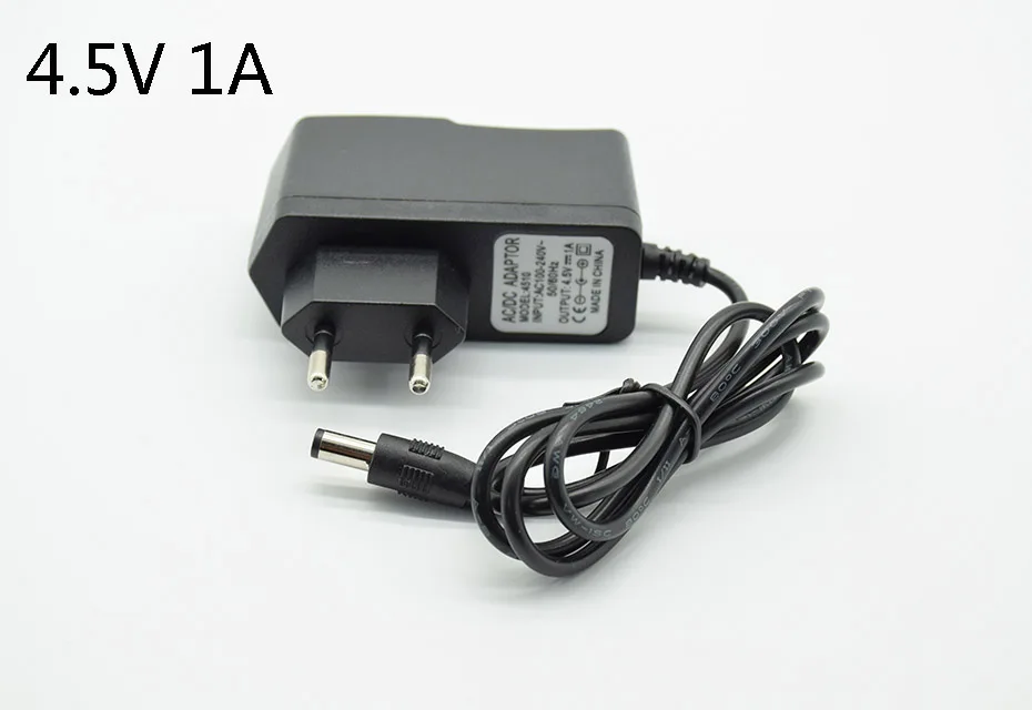 Descripción:4,2 V 1/2A o 4.5V1A Cargador de fuente de alimentación Enchufe DE LA UECargador adaptador de corriente CA a CC de 100V - 240VAdecuado para mini TV, disco duro móvil, DVD móvil, caja de TV, equipo inalámbrico de audio y video, equipo de carga, una variedad de Dispositivos Domésticos/portátilesEntrada: 100V-240V 50/60HzSalida: DC 4,2 V 1/2A 1000/2000 mA o 4,5 V 1AConector del adaptador con el interior positivo(+) y exterior negativo(-)Tamaño del conector adaptador de salida: 5,5mm x 2,5mm (2,1mm)Especificación:Cantidad: 1 piezaMaterial: acero, plástico, PVCQué hay en el paquete:1 cargador de fuente de alimentación Enchufe europeo