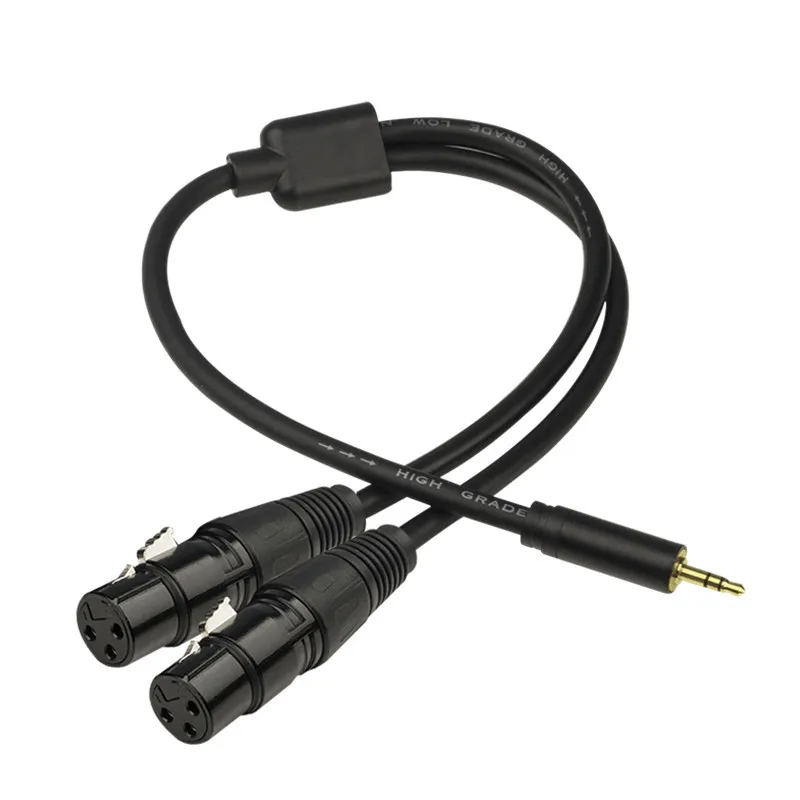 Especificaciones:* Un enchufe macho TRS de 3,5 mm a un enchufe macho/hembra doble XLR