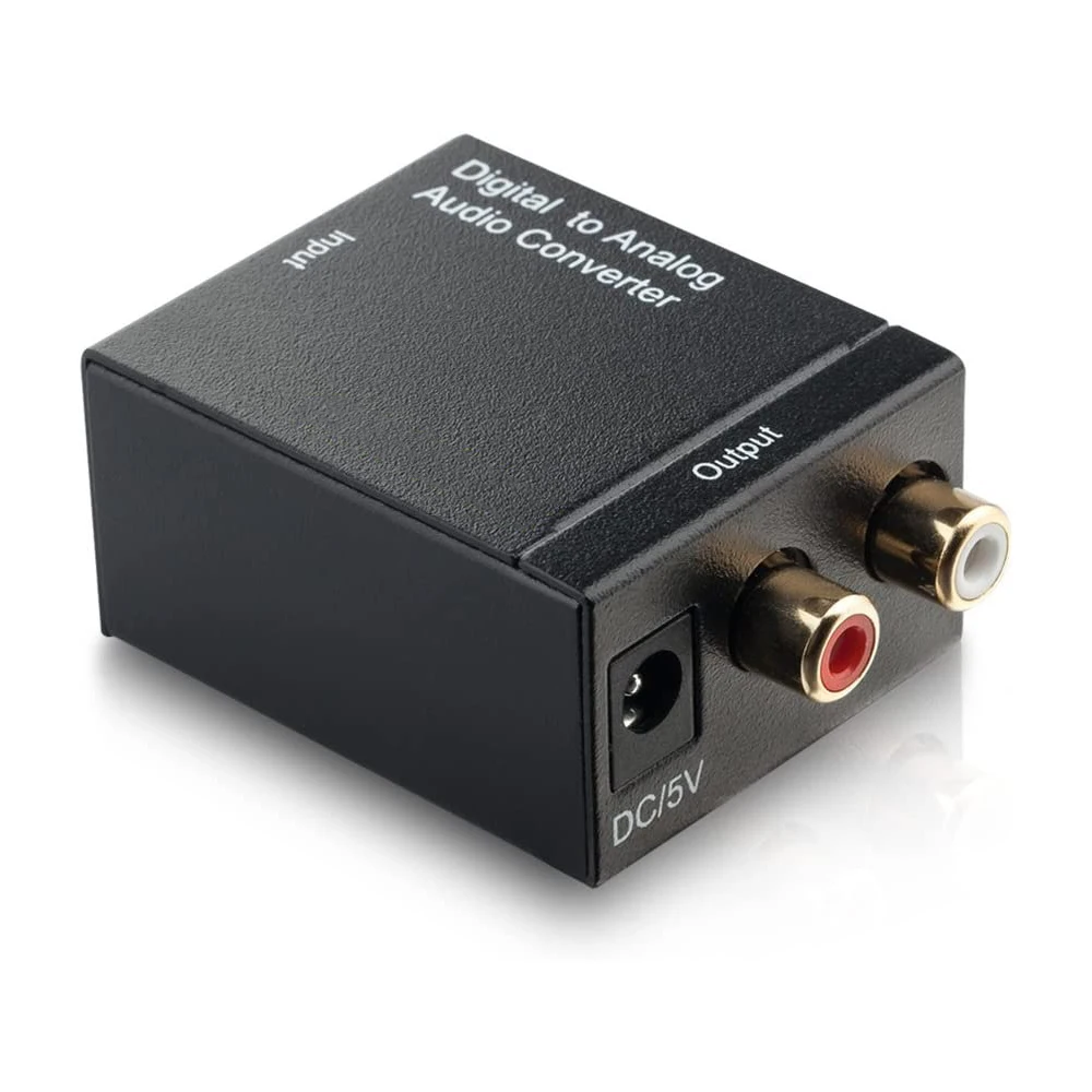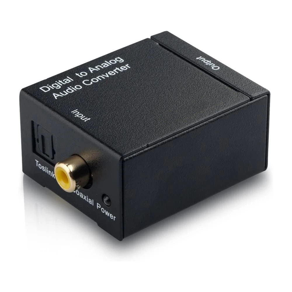 Converts Coaxial or Toslink digital audio signals to analog L/R audio