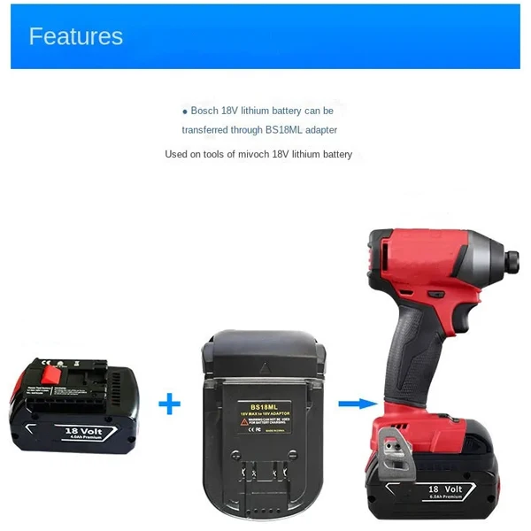 Comprar Adaptador convertidor BS18ML para baterías de iones de litio Bosch de 18V, reemplaza a batería de iones de litio Milwaukee de 18V para herramientas eléctricas Milwaukee