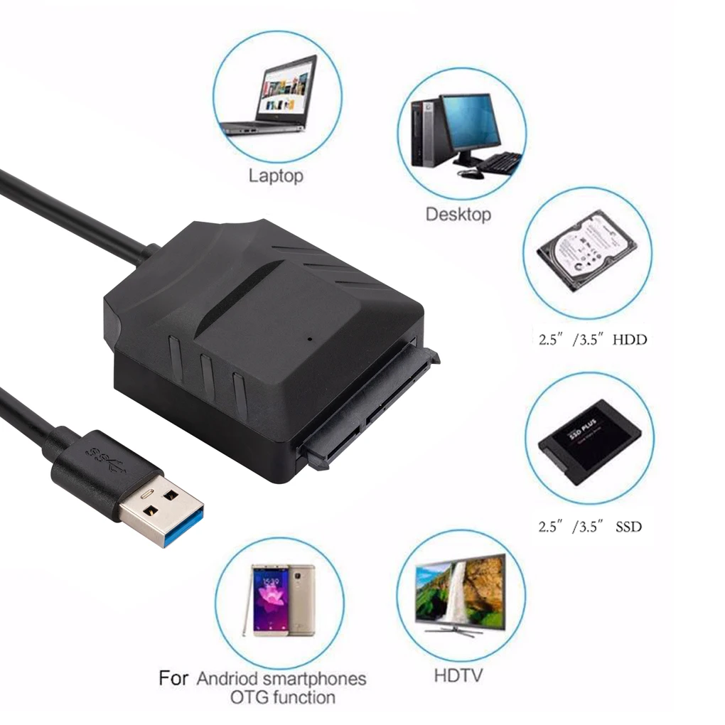 Compacto: el convertidor de cable USB 3,0 a SATA es compacto y liviano, lo cual es conveniente para que lo lleves.