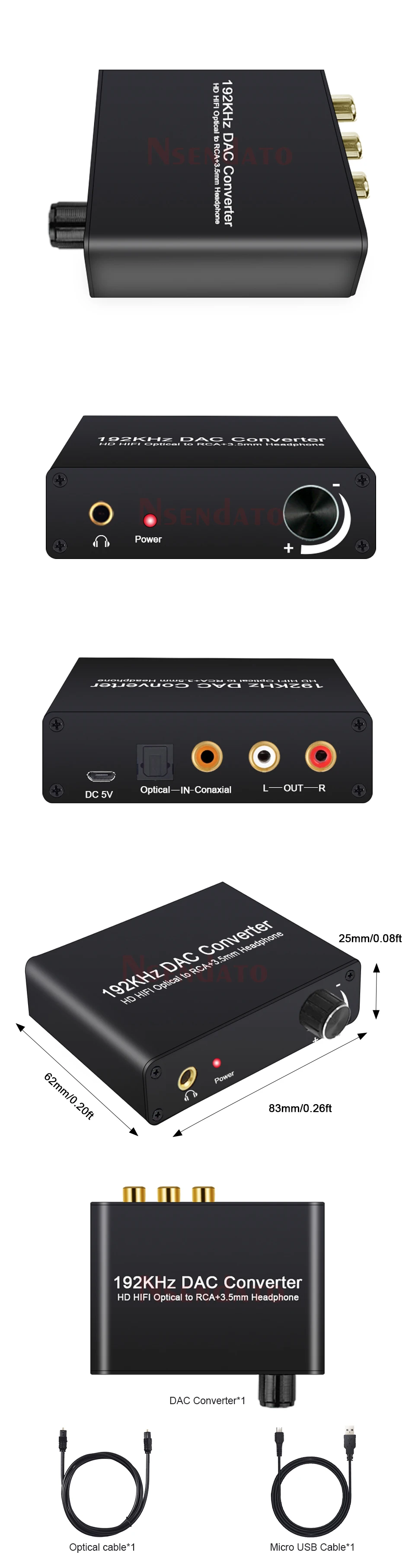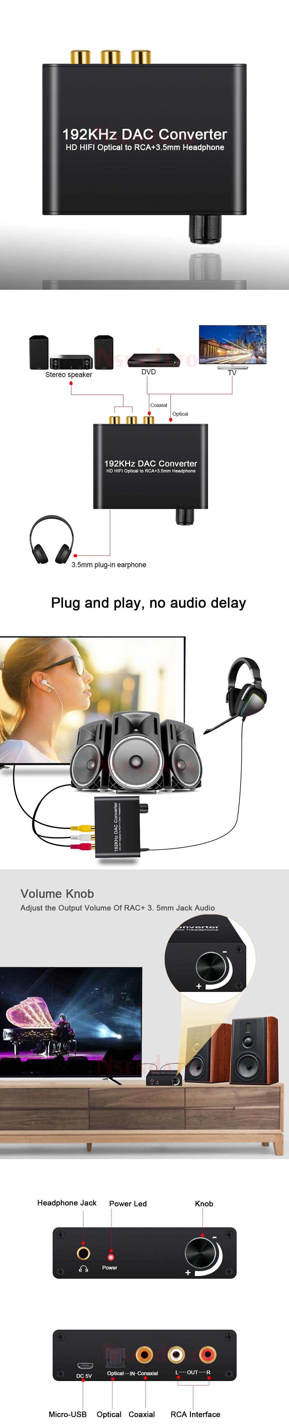 Adaptador convertidor de decodificador de Audio DAC de 192kHz 5.1CH para Dolby DTS AC3 a 2.0CH Coaxial óptico a RCA 3,5mm convertidor de Audio Digital