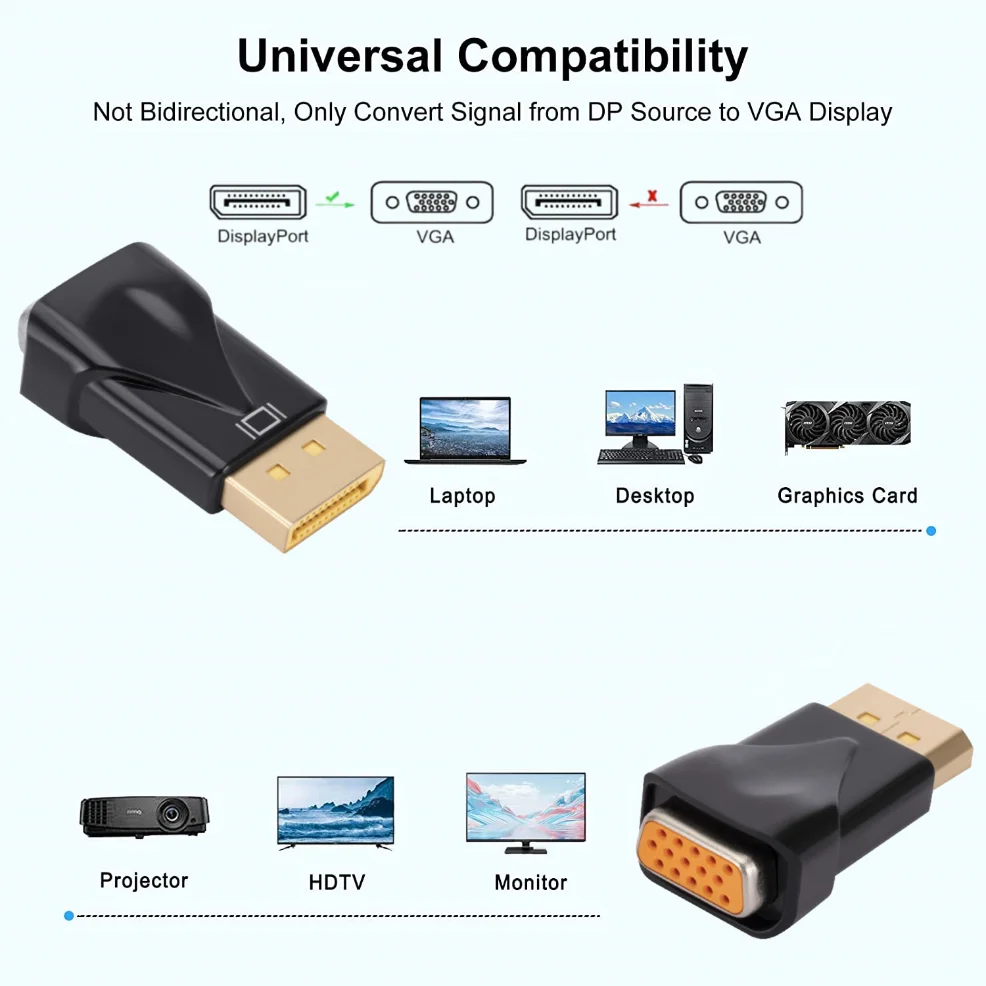 Comprar Adaptador convertidor DP a VGA de 1080P, puerto de pantalla DisplayPort, convertidor macho a VGA hembra para PC, proyector, DVD, TV, Monitor portátil