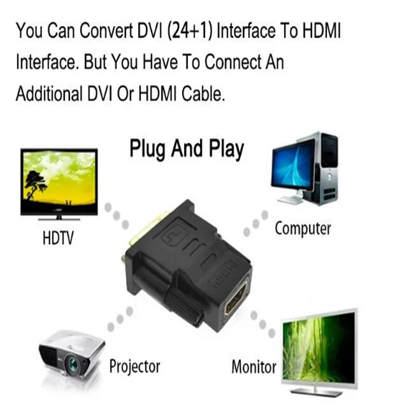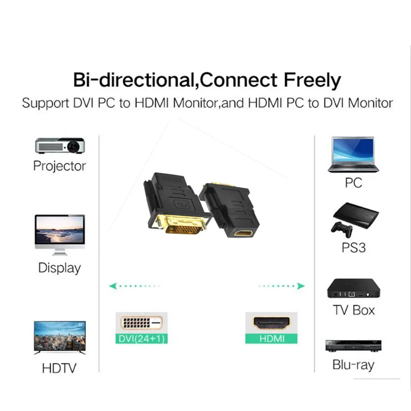 Convertidor de Adaptador DVI a HDMI, 1 Macho a HDMI, 24 + 1 Macho a HDMI Hembra para HDTV, LCD, PC, DVD, Proyector, PS3, PS4, TV BOX
