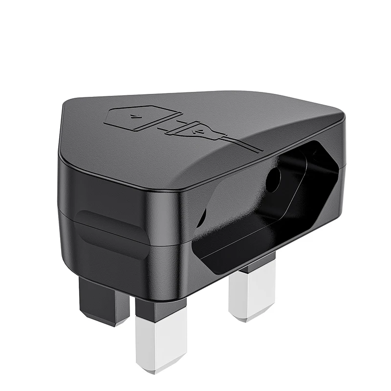 Este adaptador de enchufe europeo de UE a Reino Unido viene con un puerto hembra tipo C de enchufe europeo y un enchufe macho BS-1363 del Reino Unido. Es ideal para conectar dispositivos con un enchufe europeo de 2 pines a una toma de corriente del Reino Unido.